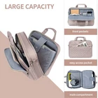 DURABLE & WATER REPELLENT: Made of durable waterproof nylon fabric that guarantees special long-term use. Waterproof fabric can protect your accessories from accidental damage. Fits perfectly underneath the airplane seat. Dimensions: 17"x12.5"x6.5" ; Weight: 1.98 lbs; MULTIPLE COMPARTMENTS: laptop briefcase has a large capacity with three compartments for almost all your daily needs, plus an extended zipper that provides more space to handle more carrying needs. The padded laptop compartment provides perfect protection for your 17" laptop from the bumps and bruises of travel. A large main compartment can hold books, files, mouse, chargers, and other office supplies. A front compartment provides easy access to badges, keys, cell phones and more. EASY TO CARRY: Adjustable "C" curve padded foam padded shoulder straps provide stability and even distribution of pressure. Sturdy handles ensure comfortable carrying for extended periods of time. Features a trolley strap that allows the bag to slide over rolling luggage, making business travel easier and more convenient. RFID POCKET: Inserting an electronic card into the RFID blocking pocket can stop theft and electronic pickpocketing and keep your information safe inside your briefcase. MULTI-PURPOSE: laptop bag is suitable for commuting, business trips, impromptu trips and road trips. Featuring a pink and quilted look, it can be a great gift for family, friends, partners and spouses if she is looking for a practical, high quality, professional business briefcase.