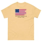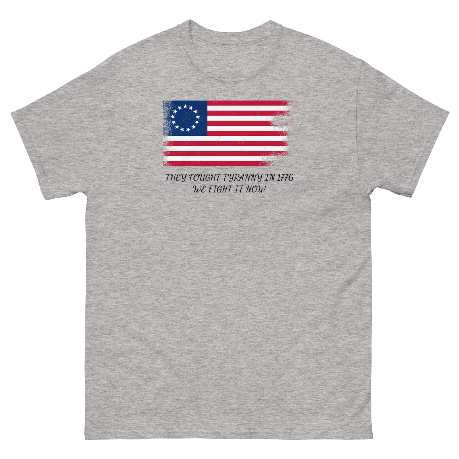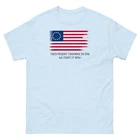 The 100% cotton unisex classic tee will help you land a more structured look. It sits nicely, maintains sharp lines around the edges, and goes perfectly with layered streetwear outfits. Plus, it's extra trendy now! • 100% cotton • Sport Grey is 90% cotton, 10% polyester • Ash Grey is 99% cotton, 1% polyester • Heather colors are 50% cotton, 50% polyester • Fabric weight: 5.0–5.3 oz/yd² (170-180 g/m²) • Open-end yarn • Tubular fabric • Taped neck and shoulders • Double seam at sleeves and bottom hem • Blank product sourced from Honduras, Nicaragua, Haiti, Dominican Republic, Bangladesh, Mexico Disclaimers: • Due to the fabric properties, the White color variant may appear off-white rather than bright white. • Dark color speckles throughout the fabric are expected for the color Natural. This product is made especially for you as soon as you place an order, which is why it takes us a bit longer to deliver it to you. Making products on demand instead of in bulk helps reduce overproduction, so thank you for making thoughtful purchasing decisions! Size guide LENGTH (inches) WIDTH (inches) SLEEVE LENGTH (inches) S 28 18 15 ⅝ M 29 20 17 L 30 22 18 ½ XL 31 24 20 2XL 32 26 21 ½ 3XL 33 28 22 ¾ 4XL 34 30 24 ¼ 5XL 35 32 25 ¼ LENGTH (cm) WIDTH (cm) SLEEVE LENGTH (cm) S 71.1 45.7 39.7 M 73.7 50.8 43.2 L 76.2 55.9 47 XL 78.7 61 50.8 2XL 81.3 66 54.6 3XL 83.8 71.1 58 4XL 86.4 76.2 61.5 5XL 89 81.3 64.3