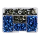 Bolts have been upgraded to 6063 aluminium that is stronger then Previous This is a replacement spire/speed clip and bolt kit, as used to secure fairings, bodywork, bumpers or just about any panel to another. Features: 1. Material: T6-6063 Aluminum Lightweight & more Durable than Old Style M5 Screw Maximum torque:4N.m M6 Screw Maximum torque:6N.m Fairing Bolts required hardness 4N.m 2. Surface Finish: Anodized Brand new appearance,give you bike a new look Corrosion Resistance, rust-proof, attractive and durable. Product Details: -- Condition: 100% Brand New -- Type: Button Head Fairing Bolts -- Material: 6063 Aluminum -- Surface Finish: Anodized -- Color:As shown -- Easy to install without instructions Package Included: (with Plastic Box) (*73 Bolts and 104 Accessories) 177PCS M6 Bolts (6 x 40mm) x 5 M6 Bolts (6 x 16mm) x 20 M6 Bolts (6 x 20mm) x 20 M5 Bolts (5 x 16mm) x 20 M5 Bolts (5 x 25mm) x 8 Truss Screws (4.8*20mm) x 4 Speed Clips x 14 M6 Washers x 20 M5 Washers x 20 M6 Plastic pillar x 20 M5 Plastic pillar x 20 Well Nut x 4 Spanner x 2 Please Note: This kits is a common size on most bikes but it remains the responsibility of the buyer to check the appropriate size fitting before order. Eextra parts can be used as spares. These are aluminium bolt that is not as hard as iron & Steel. But the hardness is quite sufficient. Fitment: Fits most of sportbikes including Honda, Yamaha, Kawasaki, Suzuki, Aprilia, Ducati, Triumph, MV Agusta...