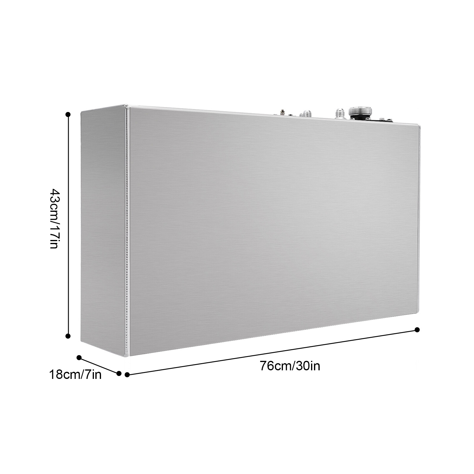 Product Description The fuel tank equipped on every vehicle is made to last the life of the vehicle and for everyday use. However, for racing purposes, it is overly large and heavy. That is where aluminum fuel cells / tanks come in. Then the 17 Gallon 64L Universal Aluminum Fuel Tank will be your best choice! It has a large enough volume, so you don't worry about the capacity of it. And it structures is simple, easy for you to install and maintain. Made of high quality aluminum material, it is durable in use. Moreover, it is light weight and easy to clean. Specifications Color: Silver Material: Aluminum Tank Measures: 30"X17"X7"/76X43X18cm (LXWXH) 8 AN Fuel Pickup 8 AN Rollover Vent 8 AN Fuel Return Capacity: 17 Gallon / 65 L Fuel sender: 0-90 Ohm Packing size: 33"X19"X11"/81.5X46X26.5cm G.W.: 7.5kg