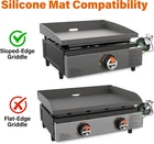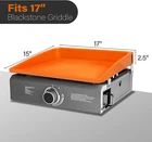 Perfect Fit: Our 17 inch griddle mat measures 17.75 x 16 x 2.5 inches / 45.4x40.5x6cm, Fits 17” Blackstone griddles; All season protection; Note: Measure your griddle before purchasing – especially if it’s a non-Blackstone brand Full Coverage: Our protective silicone mat fully covers the griddle surface and side walls, protects the griddle surface from rust, dust, dirt, debris, critters, bugs and more Heavy Duty & Food-Grade Silicone Mat: Our griddle protector is made of 100% food-grade silicone, thick, durable; heat resistant up to 400℉, DO NOT try to cook food on the griddle cover mat Must Have Griddle Accessory: Silicone toppers for griddle keeps the surface ready to cook and extend your griddle’s service life; no cleaning and prepping the surface after a long storage period Easy to Clean: Our griddle top mat has a smooth surface and is easy to wash by hand or in the dishwasher; super easy to wipe clean; dries quickly Product Description Our silicone bbq grill cover for blackstone covers the cooking surface and wide walls. Effectively keeps out moisture, dirt, bugs and rodents. Full Coverage Silicone Griddle Cover for Blackstone Griddles No one wants their Blackstone grill rusting or getting dirty. Use a silicone protective mat cover to protect the surface and be ready to grill and barbecue anytime. Indoor & Outdoor BBQ Grill Accessories Add to Cart Add to Cart Add to Cart Add to Cart Customer Reviews 4.5 out of 5 stars 196 4.5 out of 5 stars 196 4.5 out of 5 stars 196 4.5 out of 5 stars 196 4.6 out of 5 stars 29 4.4 out of 5 stars 96 4.4 out of 5 stars 96 Price $16.99 $ 16 . 99 $21.24 $ 21 . 24 $25.49 $ 25 . 49 $30.79 $ 30 . 79 — — — Quantity 1 pcs 1 pcs 1 pcs 1 pcs 26 PCS 14 PCS 5 PCS Material Food-Grade Silicone Food-Grade Silicone Food-Grade Silicone Food-Grade Silicone Silicone, Metal & Others Stainless Steel Stainless Steel Used for Griddle Mat Griddle Mat Griddle Mat Griddle Mat Cleaning Outdoor Grill Outdoor Grill Value for Money ✔ ✔ ✔ ✔ ✔ ✔ ✔ Food Safe ✔ ✔ ✔ ✔ ✔ ✔ ✔