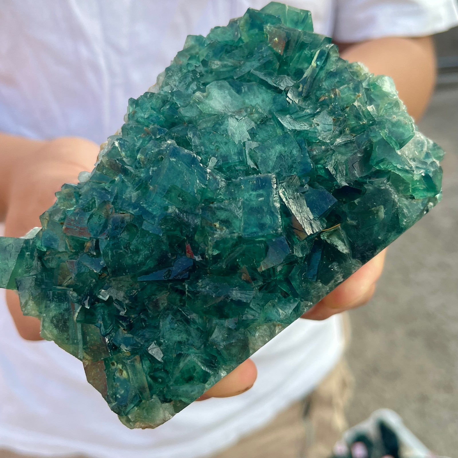 Amazing blue green hues in the fluorite. Item got here super quickly and it was wrapped completely in bubble wrap and tape. It looks exactly like the picture. It’s a solid chonk of a rock with interesting white flecks of crystal on the bottom. A+ transaction!!!