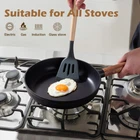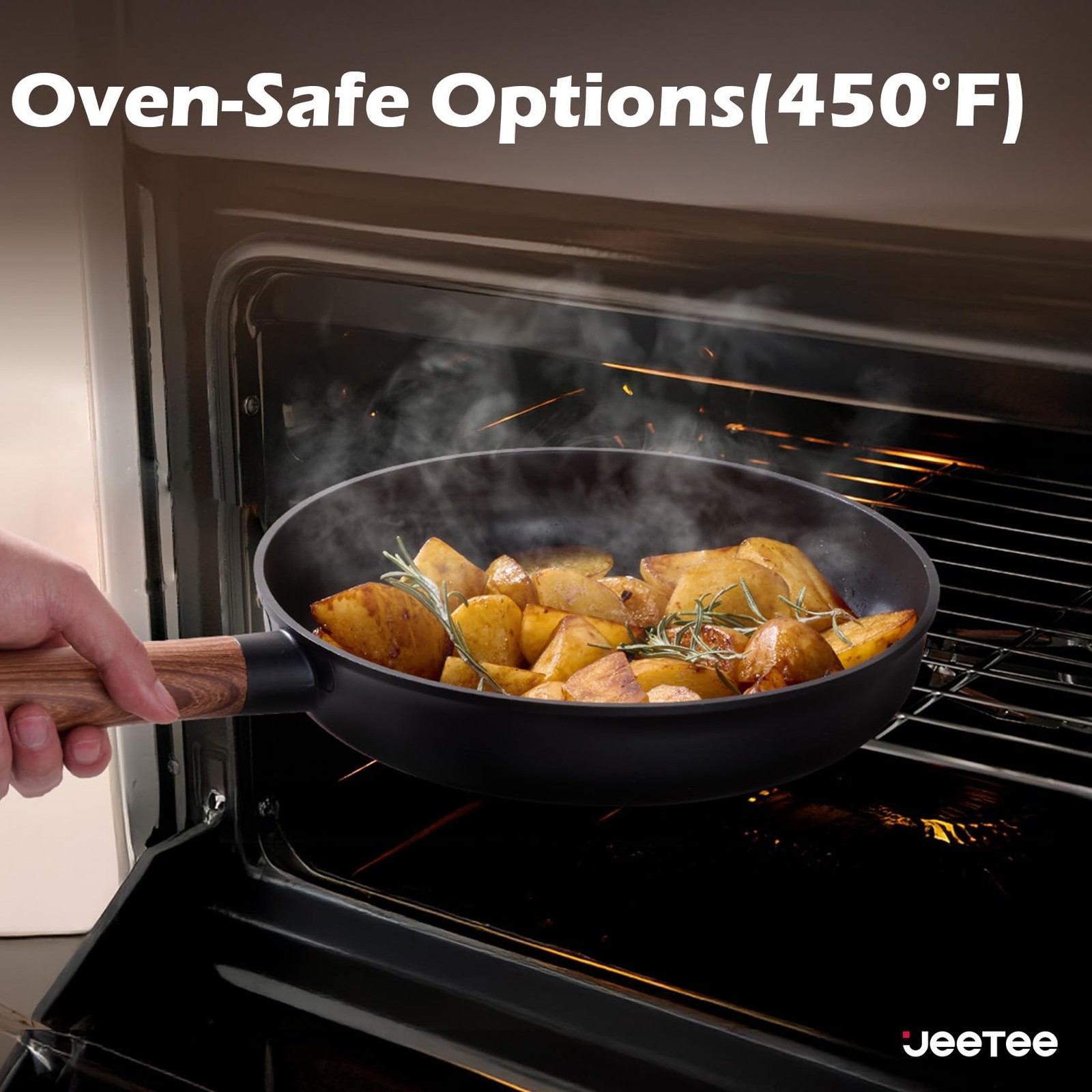 Pots and Pans Set Non Stick 17 Pieces What's included: 17 pieces cookware set, 9.5-inch and 11-inch elevated fry pans, 4.7-quart covered casserole, 4.7-quart covered sauté pan, 1.5-quart and 2.5-quart covered saucepan, 5 pan protectors, 2 silicone utensils. The best option for a family of 3-7 people, meeting all your culinary expectations. Healthy Ceramic Cookware: pots and pans set is made from natural ceramic, which is 100% Cadmium Free, PFOA Free, PFOS Free, and Lead Free. You can enjoy your cooking on cookware safely and easily. Oven-Safe Options: The cookware set can be used in ovens up to 450°F, making it suitable for baking, roasting, and grilling. It is also ideal for gas, electric, and induction stoves. Before placing it in the oven, make sure to remove the handle. Non-Stick Appeal: The pans feature a non-stick coating, which makes cooking and cleaning a breeze. Food slides right off, minimizing the need for excess oil and making post-meal cleanup a snap. Saving Space Design: Neatly stack all the pots and pans, and place the pot protector between each pot to prevent scratches, saving 70% of the space compared to regular pots, and can be easily placed in the cabinet.