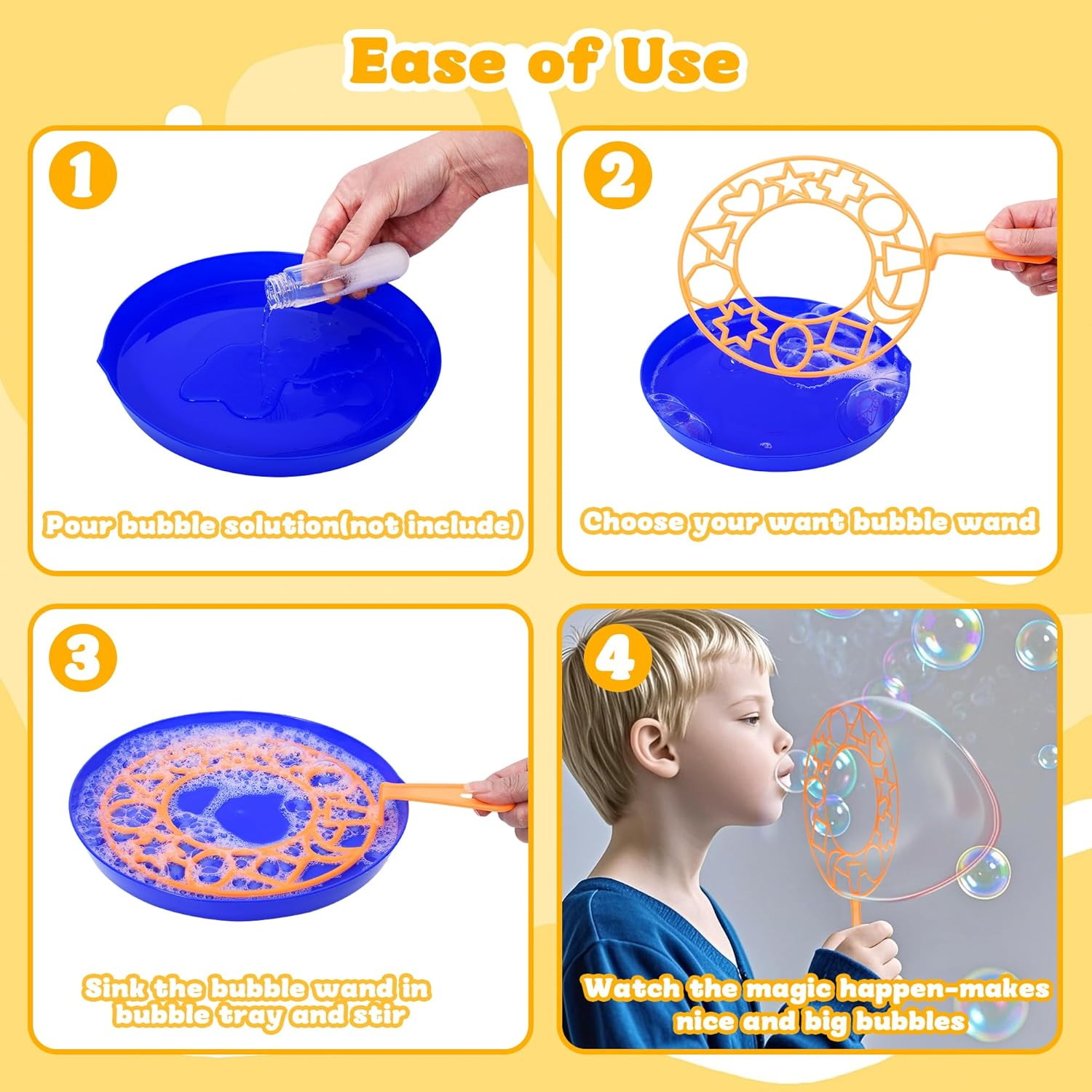 Store New Arrivals Add to Favorite View Feedback Contact Bubble Wands Set for Kids,17 Pcs Assorted Bubble Wands with Tray, Big Bubble Maker Wand for Kids Summer Outdoor Games,Birthday Party,Family Event,Gifts for Bubble Lovers Description Item model number WNBW01 Product Dimensions 10 x 10 x 0.2 inches Country of Origin China Item Weight 7.4 ounces Manufacturer recommended age 3 years and up Manufacturer iShyan Great Variety: Bubble wand set comes with 2pcs big bubble wands, 3pcs medium bubble wands,4pcs animal bubble wands,5pcs small wands and 3pcs bubble wands tray. Variety of sizes, great fun. Plastic Bubble Wands:Bubble wand is made of plastic materials. The lightweight handle design is perfect for little hands, making it easy for kids to create different sized, mesmerizing bubbles. Easy To Use: Big bubble wand set comes with 3pcs plastic tray(2 large siez+1 small size) to put the bubbles in. Makes it really easy for kids to dip the wand into the tray and then kids making bubbles.(solution not included) Fun For All Ages: Little kids who move fast can make little bubbles with these wands. Bigger kids and adults who move slower and more controlled can create large bubbles. Let the kids enjoy outdoor play and disconnect from screens with this engaging activity. Big fun starts with giant bubbles! Ideal Gift: These beautiful wands are not just a toy but a great addition to any special occasion, including birthday parties, a family reunion, or a fun day at the park, family photoshoots, vacations, camping trips, or playdates. Create unforgettable memories with our bubble wands,they also make a thoughtful gift. Product Description ABOUT US We offer the best prices around on high quality products. Our E-store includes media such as books, movies, music and games while offering electronics, toys, sporting apparel, clothing, tools, general home, garden items and more. SHIPPING We are always working hard to ensure your package arrives as soon as possible. Please understand that some factors like weather, high postal traffic, and the performance of shipping companies are outside of our control. We offer free shipping to the lower 48 states and ship within 2 business days of payment, usually sooner. We do not accept P.O. Boxes. Please provide a physical address. RETURNS We offer a 30-Day Return Policy on items which you are not completely satisfied with. You have the option for a full-refund or an exchange of the item. No returns are available on items shipped outside of the USA. PAYMENT We accept PayPal. CONTACT US This page content is yet to come Please ad us to your favorite seller and visit again later Thank You CUSTOMER SATISFACTION We try our very best to make sure every customer is completely satisfied. If there's a problem, message us! We're happy to help.