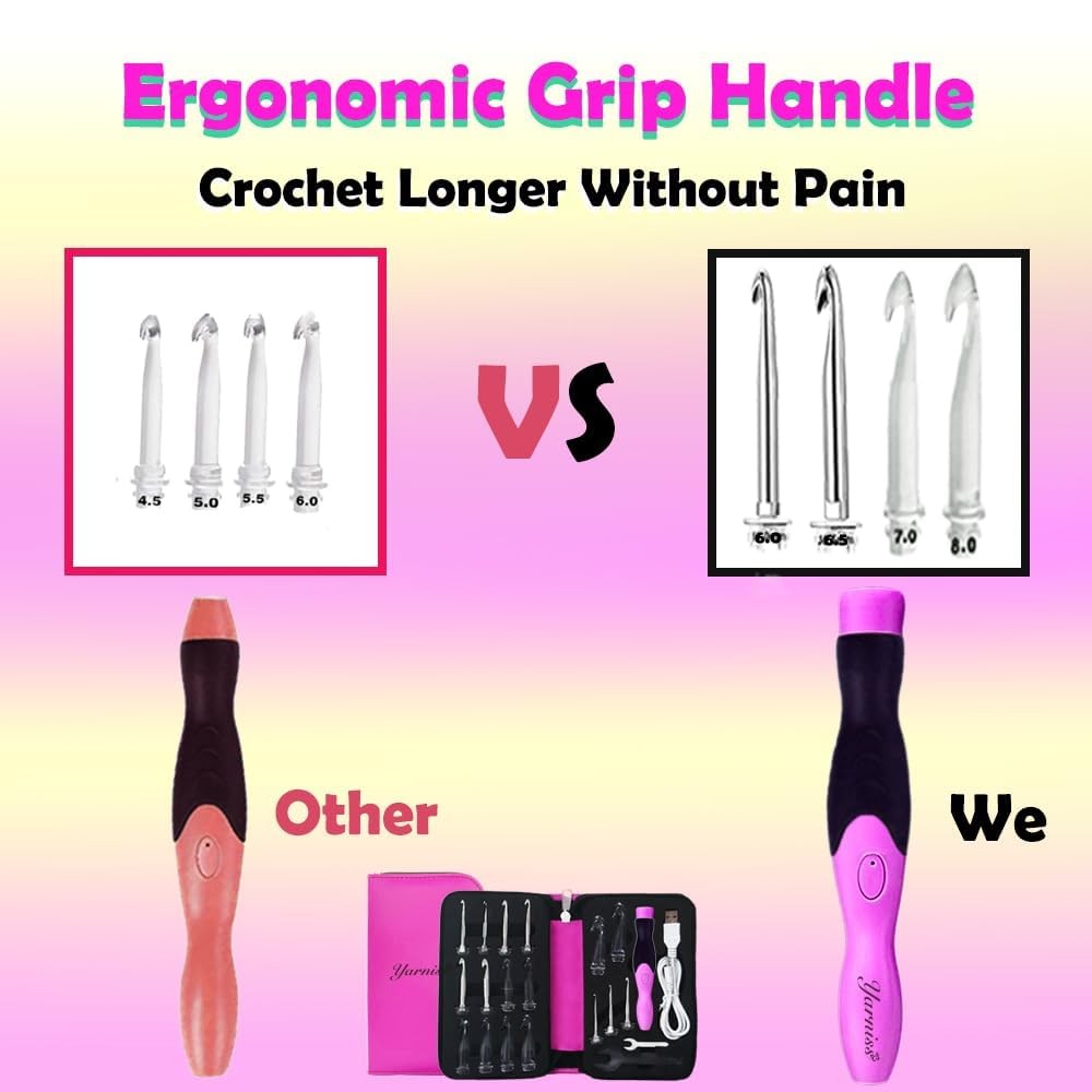 Absolutely love this set! The lighted hooks make crocheting in low light so much easier, and the rechargeable feature is super convenient. The variety of sizes covers all my project needs, and the case keeps everything organized. The interchangeable heads are a game-changer—no more fumbling with multiple hooks. The USB charging is fast, and the battery lasts a long time. Perfect for both beginners and experienced crafters. Highly recommend!