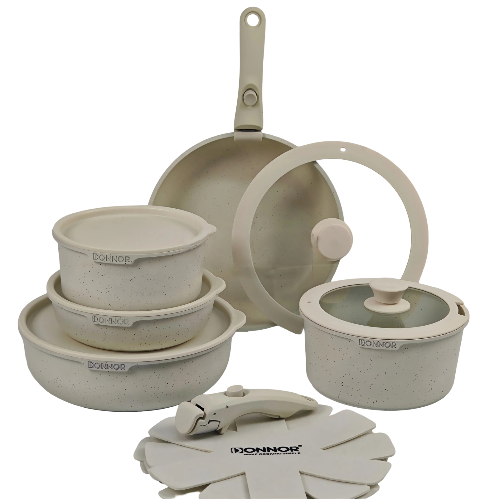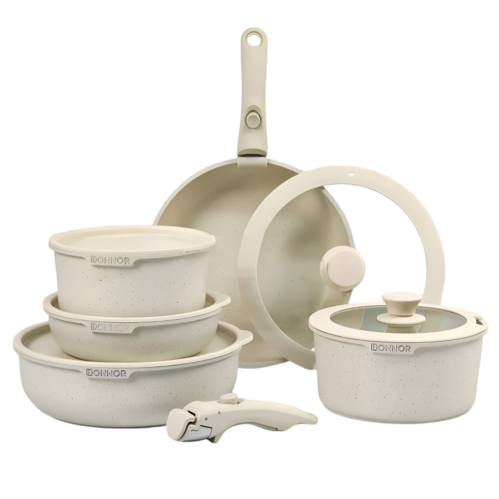 5-Piece Nonstick White Cookware Set with Detachable Handles
