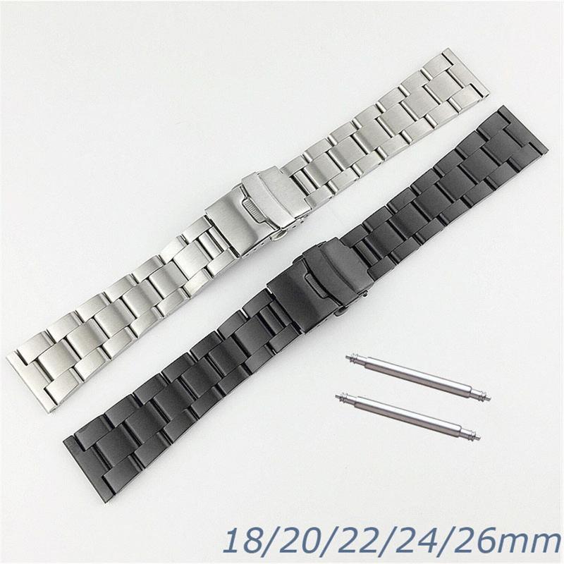 18 20 22 24 26mm Stainless Steel Link Bracelet Strap Watch Band Secure Buckle