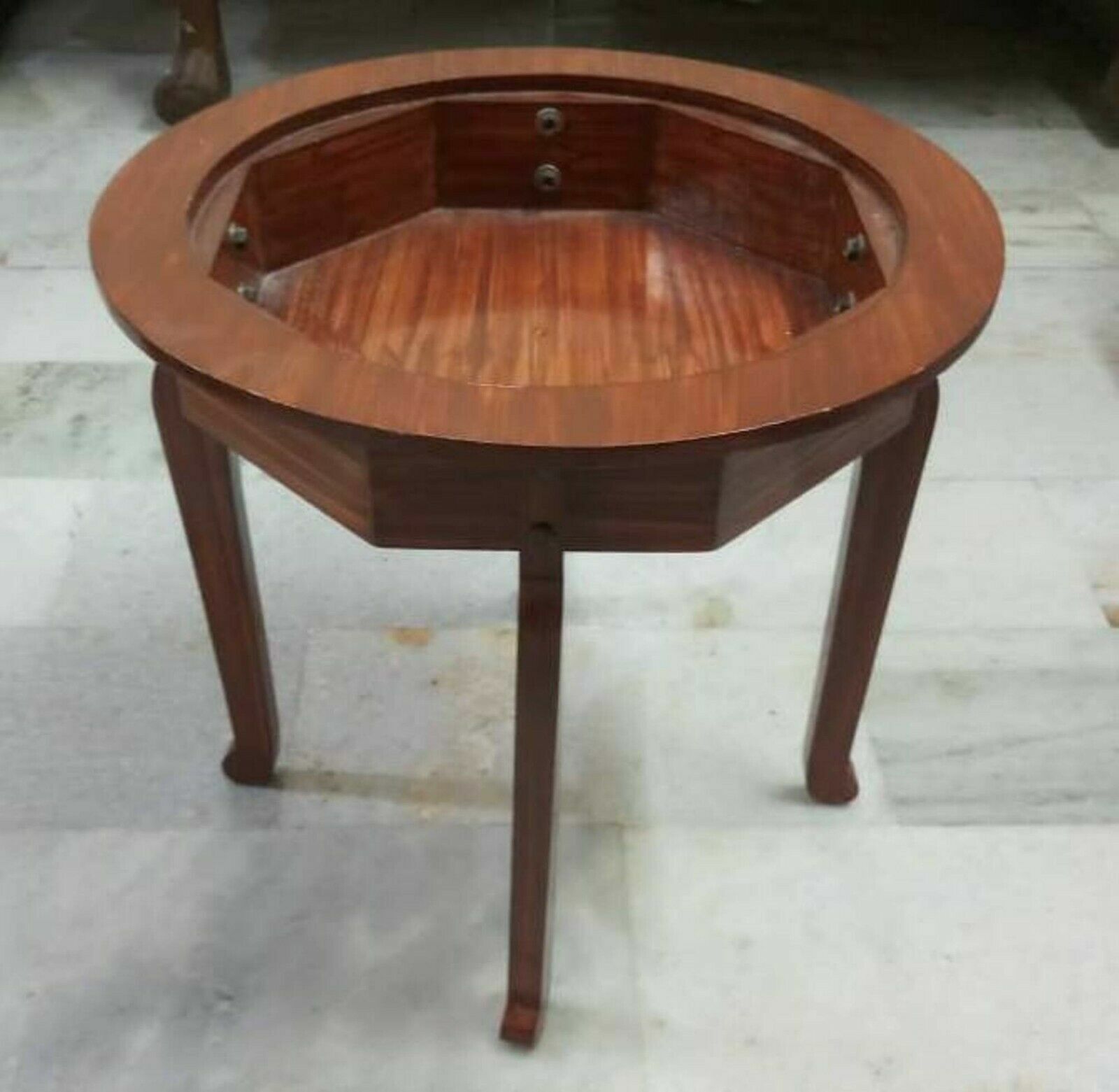 18" Black Marble Table Top Pietra dura Inlay Work Handicraft with wooden stand