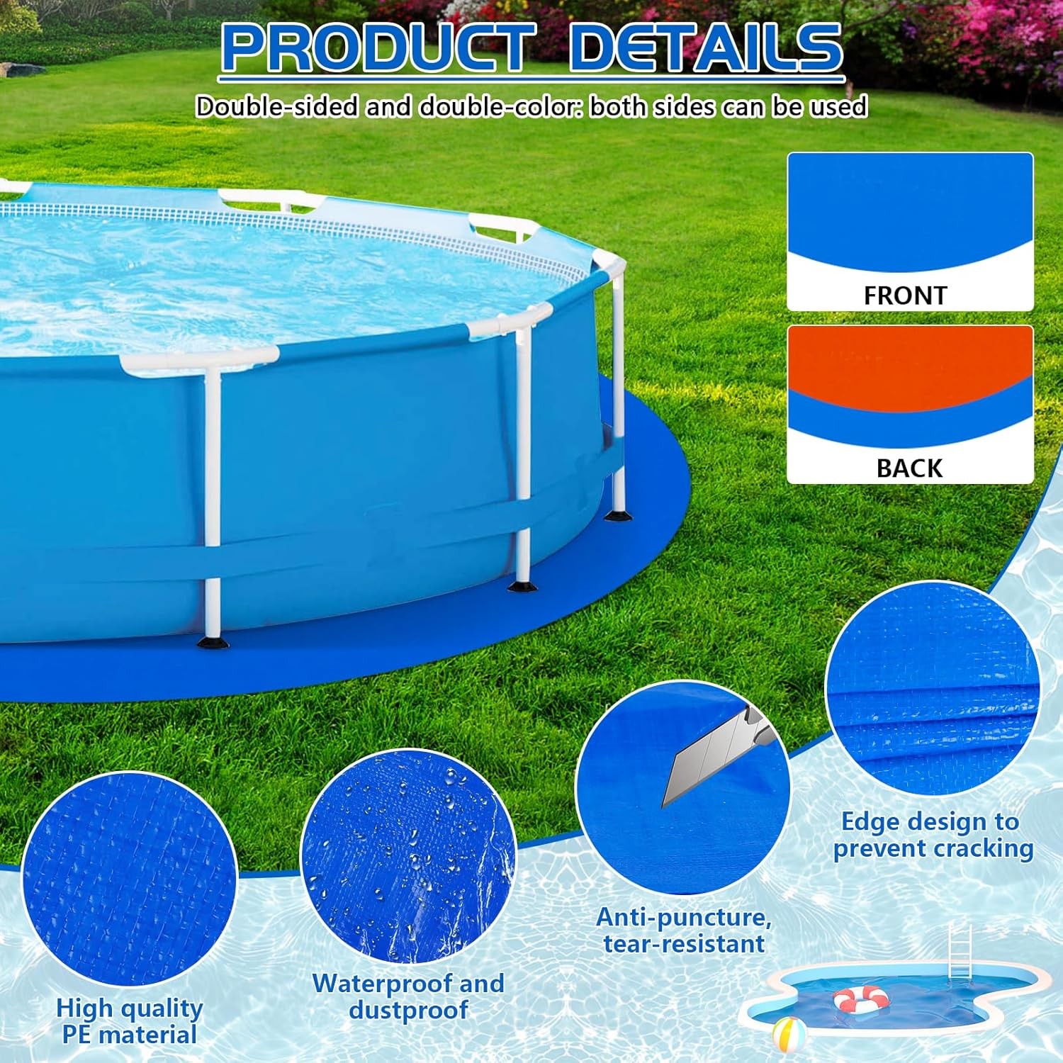 This pool mat is a total game-changer! The super thick material feels incredibly durable and gives me peace of mind knowing it's protecting my pool from punctures. I love the vibrant dual-color design too - it adds such a fun pop underneath the water. Installation was a breeze, and it's holding up perfectly against sun and weather. Definitely a must-have for any above-ground pool owner!