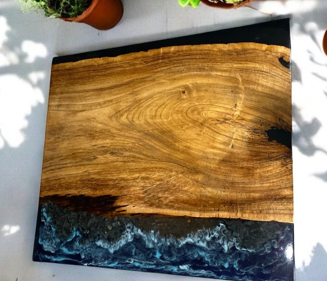 Table Top Size: 18"x18" Inches Our epoxy tables are custom-made, and we strive to use the same type of wood as depicted in our advertising pictures. However, it is not always possible to find an exact match, which may result in slight variations in the epoxy color and wood grain pattern. It's important to keep in mind that the table you receive may not be an exact replica of the advertising picture. We ensure that our clients are informed of every step of the process, from the selection of the wood to the final finish of the table. We keep our clients up-to-date throughout the process to ensure transparency and avoid any misunderstandings. Additionally, our price includes air delivery right to your doorstep via DHL/Fedex/UPS and insurance protection. Please note that you may be responsible for paying any applicable tax and duty on delivery. If you have any concerns or doubts, we highly recommend addressing them before making a purchase. Clearing any doubts beforehand will help avoid any issues and ensure a smooth buying process. It's important to note that any accessories depicted in the advertising images, such as knives, chairs, or lighting, are not included with the product and are only used for photography purposes. Additionally, please keep in mind that the price of the product does not include any type of legs. If you would like legs included, we can provide them for an additional cost. We recommend addressing any questions or concerns before making a purchase to avoid any misunderstandings.