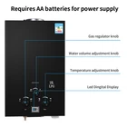 Store category Sign Up Now ! You may also like Product Description Bullet Points: Efficient Temperature Control: Easily adjust hot water temperature with a rotary air supply and water outlet control knob, ensuring energy-saving operating; includes an intuitive LED display Unmatched Durability: With its anti-rust stainless steel housing and high temperature resistant copper water device, our tankless propane water heater is built to last. Enjoy more hot water supply with confidence Enhanced Safety Measures: Featuring over 75C protection, multiple protection design, and low waterflow protection, our tankless propane water heater can be started at even low water pressure for safe operating Efficient Heating Solution: Featuring a fast heating design and lightweight, wall-mounted structure to save space—ideal for winter or chilly settings Wide Range of Application: Tankless propane water heater delivers constant hot water for multiple uses including hand washing, sink cleaning, and pet showers. Perfect for bathroom showers and outdoor activities With LED display, over 75°C protection, and a long lifespan, this system is perfect for hand washing and can be used for a variety of applications. Best of all, it saves space and is robust enough to provide you with hot water for years. Specification: Name: propane hot water heater Colour: Black Material: stainless steel + copper Capacity: 18L Product size: about 35x59x15cm/13.78x23.23x5.91 inches Weight: about 8kg/17.6lbs Nominal Heat Input (Q): 36kw Minimum Heat Input (Q): 14.8kw Hot Water Producing Capacity (L/min At=25K): 18 Pressure ( mbar): 28-29 Appliance Type: B11BS Certification Number: 314585 Powered Type: liquefied propane Nominal Useful Output(kW) : 10.2 Max Water Pressure( bar): 10 Min Water Pressure(bar) : 0.5 Packing List: 1 x Portable tankless water heater (Batteries not included) 1 x Shower kit 1 x Screw bag 1 x Manual Notes: 1. Due to different lighting and screen settings, the item color may be slightly different from the picture. 2. Due to different manual measurements, please allow a 1-2cm difference in size. 3. The product requires two D batteries. Payment Delivery details Terms of sales About us Feedback & DSRs Payment Before you palce an order, please kindly make sure that you have a paypal account. We accept PAYPAL payment only. Payment should be completed within 2 days after auction closed, or unpaid dispute will be filed for an closing auction. An unpaid case will be filled after 4 days. Delivery details We ship to your eBay address. Each package will be shipped to US by UPS Regular Parcel with tracking number. Please check your shipping address carefully before checkout, it can't be changed if order completed. All items will be shipped within 1-2 business day upon receipt of payment.Orders placed on weekend will be shipped within 3 days. If you do not receive your item in 7-10 business days.please contact us immediately for further assistance. We will be responsible for any damages or losses incurred in the shipping process. About us We maintain high standards of excellence FIVE STAR and strive for 100% customer satisfaction! Positive Feedback is very important to us. We hope that you contact us immediately Before you give us neutral or negative feedback, so that we can satisfactorily address your concerns. We promise to offer the lowest price and high quality produce. Our working time: From Monday to Friday(9:30 am to 18:00pm), we don't working on holidays ,hope you can understand and know that , thank you. Please always talk to us via ebay Message. We appreciate your business and look forward to growing our e-Bay sales with satisfied customers. Feedback Contact us If you have any questions, please feel free to contact with us by ebay Message during our business hours ( 9:30a.m. to 5:30 p.m.), or email us through eBay, we will try our best to help you to resolve it. For any presale or after-sale questions,please do feel free to email us! Due to the time difference, each email will be replied within 1 working day,and weekend will be delayed a bit. Feedback