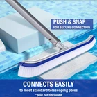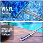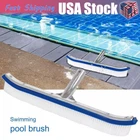 Pool Brush, Heavy-Duty Brush Head for Cleaning Pool Walls, 18" Brush Aluminum -Stains can sometimes be extremely stubborn, so this heavy-duty brush was designed specifically with algae in mind. -Regular pool cleaning is critical to reducing the workload of your pool equipment. Just attach a standard extension pole to the algae brush handle, and you're ready to go! Feature: Curved Edge & Nail-Free Design: -The bristles curve up on the ends, which makes it much easier for the bristles to stay in contact on the surfaces of the wall and floor. Upgrade your pool cleaning with above pool equipment. -The smooth and round finishing edges as well as the premium nylon bristles of the pool brush are gentle on pool liners and painted pool floors, so there are no scrapes or snags to pool surfaces,even to vinyl liner. -Surface Nail-Free for Safe Use & Elgant Appearance :Decorate your pool to make it more beautiful. Sturdy Aluminium Structure and Durable Nylon Bristles: -Reinforced brush structure is made of premium quality aluminium and ABS plastic, which makes the pool scrub brush stronger. Meanwhile the high-density nylon bristles lead to longer lifetime and much efficient to clean stubborn stain. Efficient & Save Time: -Measuring 17.5" wide, the Wall Brush Deluxe provides a large sweep area for quicker cleaning. angled at 45° for easy pushing and effective cleaning, help you save more energy. The safe EZ Clip fits a standard pole: -18" deluxe wall brush,it is compatible with most standard pool poles.With EZ Clips simply connect to telepole or pole and get brushing right away. Premium Nylon Bristlep: -Premium nylon bristle is longevity and durability, difficult to fall out. Enhanced & Rust-Proof: -Reinforced aluminium back with antirust paint , make it beautiful and durable. Multi-Scene Use: Perfect choice for multi-scene cleaning, designed to clean walls, tiles, floors, steps and corners of pool, tubs, home & hotel, it also suitable for scrubing bathroom floor, raking leaves off roofs. Specification: -Color: blue -Material: plastic + aluminum -Product size: 45*15cm/18*5.9inch Package included: 1x Pool Cleaning Brush (Not Includes Pole)