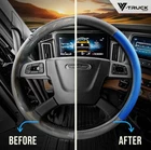 STEERING WHEEL COVERS PROVIDE A MORE COMFORTABLE GRIP GREAT FOR ALL SEASONS AND WEATHER STEERING WHEEL COVERS PROTECT YOUR ORIGINAL STEERING WHEEL FROM WEAR, INCLUDING CRACKING DUE TO SUNLIGHT STEERING WHEEL COVERS ARE AVAILABLE IN A VARIETY OF DESIGNS AND COLORS ALLOWING DRIVERS TO PERSONALIZE THE INTERIOR OF THEIR VEHICLE ALL NATURAL MATERIALS - WE USE ODORLESS, NON-TOXIC, ECO-FRIENDLY MATERIALS THAT ARE EASY TO CLEAN AND SANITIZE. V-TRUCK STEERING WHEEL COVERS ARE FLEXIBLE TO ENSURE A FIT FOR YOUR 18 INCH STEERING WHEEL !!!!! WARNING !!!!! PLEASE MEASURE YOUR STEERING WHEEL BEFORE PURCHASE