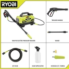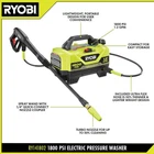 1800 PSI 1.2 GPM Cold Water Corded Electric Pressure Washer Convenient Portable Cleaning with 1800 PSI 1.2 GPM For use on Patio Furniture, Grills, Cars, Windows, & More Compact & Lightweight Design for Easy Transport The RYOBI 1800 PSI 1.2 GPM Electric Pressure Washer is the perfect lightweight and portable solution for your outdoor cleaning needs. Without the hassle of gas, this electric pressure washer is ideal for light duty tasks like cleaning patio furniture, grills, windows, bikes, boats, campers, decks, and other outdoor applications. Weighing just 16 lbs, this pressure washer is compact, making it convenient to transport and store in small spaces. The included 20 ultra flex hose is 50% lighter than a standard high pressure hose, reducing fatigue and allowing for easy maneuverability. The spray wand is equipped with a ¼ quick-connect nozzle coupler, making nozzle changes quick and simple. Clean a variety of messes with the two included nozzles, and get the job done 50% faster than a standard nozzle with the included turbo nozzle. Attach the soap applicator for a deeper clean when detergent is needed on tougher jobs. This pressure washer is backed by the RYOBI 3-year limited warranty. This kit the RY141802 1800 PSI 1.2 GPM Pressure Washer, Trigger Handle, Spray Wand, 20 Ultra Flex Hose, Soap Tank, ¼ Quick-Connect Nozzles (15°, Turbo, Soap), & Operator s Manual. Amperage (A): 13 A Assembly Required: Yes Commercial / Residential: Residential Connection Type: Bayonet Style Trigger Handle Connection Cord Length (ft.): 35 Features: Chemical/detergent injection,Cord Lock,Quick connect tips Gallons Per Minute: 1.2 Hose Material: Polyurethane Included: GFIC plug,Hose,Onboard cord storage,Onboard storage Maximum Pressure (PSI): 1800 psi Nozzle Type: Pro Style tips with quick disconnect Number of tips included: 3 Power Type: Corded Product Weight (lb.): 16.34 lb Pump Brand: Other Pump Type: Axial Reconditioned: New Returnable: 90-Day Start Type: Electronic Ignition Suggested Use: Car,Grill,Patio Furniture Water Temperature: Cold Manufacturer Warranty: 3-Year Limited Warranty Assembled Depth (in.): 18.375 in Assembled Height (in.): 7.75 in Assembled Width (in.): 11.875 in Hose length (in.): 240 in Interior Hose Diameter (in.): .25 in Wheel Diameter (in.): 0