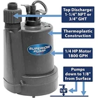 You may also like Kids Folding Table & Chair Set 5-Piece Playroom Daycare Indoor Outdoor New 55.99 USD 58.94 USD Free shipping 5% off Ceramic Mug Reactive Glaze Ergonomic Handle Dishwasher Microwave Safe Stoneware 9.85 USD 10.37 USD Free shipping 5% off Armor Gray Epoxy-Seal Low VOC Concrete and Garage Floor Paint UV-resistant Patio 49.36 USD 51.96 USD Free shipping 5% off Recycled Medium Shipping Boxes Corrugated Moving Storage Box Durable 30 Count 24.89 USD 26.2 USD Free shipping 5% off Ceramic Baking Dish W/ Acacia Wood Lid Double Handles Oven to Table 13.39in New 29.39 USD 30.94 USD Free shipping 5% off 1 Gal Clear Multi-Surface Exterior Waterproofing Sealer for Decks Fences Siding 52.03 USD 54.77 USD Free shipping 5% off Sesame Street Story Dream Machine Interactive Toy Nightlight Toddlers Kids New 71.63 USD 75.4 USD Free shipping 5% off 1 Gallon Penny Candy Glass Jar with Lid for Kitchens/pantries Storage Organizer 13.03 USD 13.72 USD Free shipping 5% off Toddler Potty Chair W/ Realistic Flush Handle Storage Compartment Easy Clean New 30.85 USD 32.47 USD Free shipping 5% off 10 Gallon Glass Aquarium Kit LED Lighting 3 Stage Filtration Fish Tank New 55.55 USD 58.47 USD Free shipping 5% off Adjustable Leaf Scoops Yard Rakes Lightweight Garden Tools Easy Pickup New 12.42 USD 13.07 USD Free shipping 5% off Foldable Pet Grooming Table W/ Adjustable Arm Easy Storage Transport Use 86.44 USD 90.99 USD Free shipping 5% off About this item 1/4 HP Utility pump moves up to 1,800 gallons per hour; pump will lift water up to 25' of vertical height Tough thermoplastic construction; 10' cord length 1-1/4 inch NPT discharge for high capacity pumping; includes 3/4 inch garden hose adapter Removable suction screen and handles up to 1/8 inch solids DISCHARGE SIZE: 1-1/4”. SOLIDS HANDLING:1/8” › product details Color Black Material Thermoplastic Style Thermoplastic Product Dimensions 7"L x 7"W x 12"H Power Source AC Item Weight 6. 8 Pounds Maximum Flow Rate 30 Gallons Per Minute You may also like Adjustable Swivel Blind Chair Comfort Durable Fabric Mud Feet Hunting Gear New 61.71 USD 64.96 USD Free shipping 5% off Portable Single Burner Propane Stove Camping Cooking Lightweight Outdoors New 31.11 USD 32.75 USD Free shipping 5% off Durable Canvas Laundry Bag Heavy Duty Zipper Pocket Over Shoulder Strap New 11.31 USD 11.91 USD Free shipping 5% off FrontFill Mini Brew 5 Cup Programmable Coffee Maker with Clock & Glass Carafe 26.48 USD 27.87 USD Free shipping 5% off Oceanside Flannel Scented Candle 18oz Wooden Wick Jar Cozy Glow Decorative New 23.23 USD 24.45 USD Free shipping 5% off 40pc Dual Tip Alcohol Based Markers Art Set Assorted Colors Ergonomic Design New 36.65 USD 38.58 USD Free shipping 5% off Hyacinth Storage Basket W/ Lid Woven Handles Decorative Organizer Home New 25.05 USD 26.37 USD Free shipping 5% off 24-in Wood & Poly Leaf Rake Fan-shaped Head Long Handle for Lawn Garden Clearing 17.95 USD 18.89 USD Free shipping 5% off Toddler Potty Chair W/ Realistic Flush Handle Storage Compartment Easy Clean New 30.85 USD 32.47 USD Free shipping 5% off Enameled Cast Iron Griddle Nonstick Kitchen Cooking Pan Heat Distribution New 26.74 USD 28.15 USD Free shipping 5% off Foldable Pet Grooming Table W/ Adjustable Arm Easy Storage Transport Use 86.44 USD 90.99 USD Free shipping 5% off Sesame Street Story Dream Machine Interactive Toy Nightlight Toddlers Kids New 71.63 USD 75.4 USD Free shipping 5% off