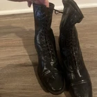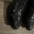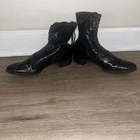 These are ladies Victorian boots from the 1890s, black in color with a lace-up design. Made of leather by Friedman Shelby International Shoe Co., they are original and have a Victorian look. These boots are in a witch or shabby style, perfect for an Edwardian occasion. The US shoe size is 8. This pair of shoes contains solid leather outsole insoles heels and counters.