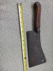 This listing is for a Wm Beatty & Sons No. 9 meat cleaver. No. 9 signifying that the blade is 9" long. Blade has some surface rust. Wood handle is in good shape. This piece has a neat look to it and would make an excellent haunted house prop.