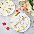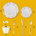 【SAFE and DURABLE】This gold dinnerware set is made of 100% food-grade plastic, BPA-free. The high-quality dinner plates and salad plates offer reliable strength and durability. Let your family and friends feel safe and satisfied and enjoy the good times 【ELEGANT MARBLE DESIGN】Plastic party plates with a gold stroke marble design will match well with the gold silverware, that will add a luxurious and romantic atmosphere to any occasion and bring a contemporary look to any table setting 【30 GUESTS DINNERWARE SET】This white and gold plastic tableware set includes 30 dinner plates, 30 dessert plates, 30 forks, 30 spoons and 30 knives, 30 cups. everything you’ll need for the complete party planning experience! 【PERFECT FOR ANY OCCASIONS】Disposable gold plastic plates with silverware is the perfect choice for every event and occasion including Birthday, Halloween, Thanksgiving, Christmas party, banquet dinner, engagement party, weddings, and cutlery which will definitely impress your guests! 【AFTER-SALES SERVICE】We value our customers and your shopping experience are very important to us. If your disposable dinnerware is damaged. Please feel free to contact us, replace quality customer service