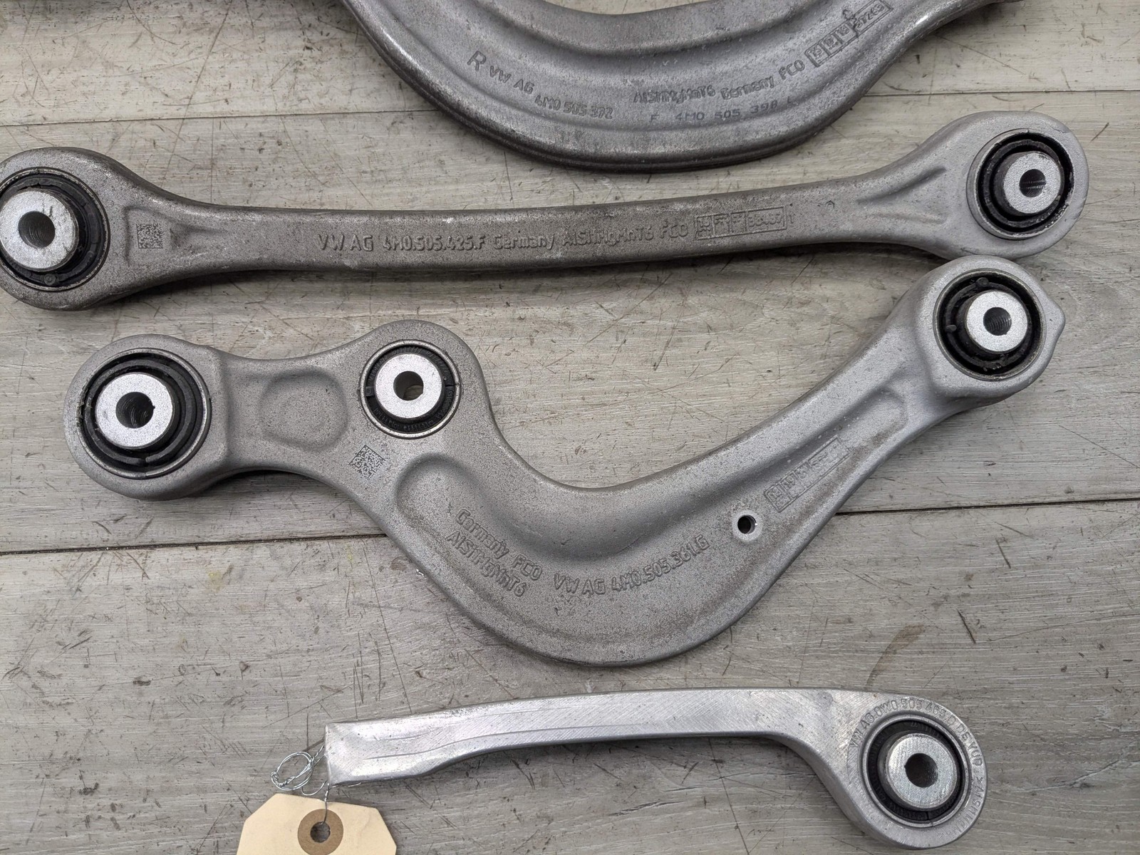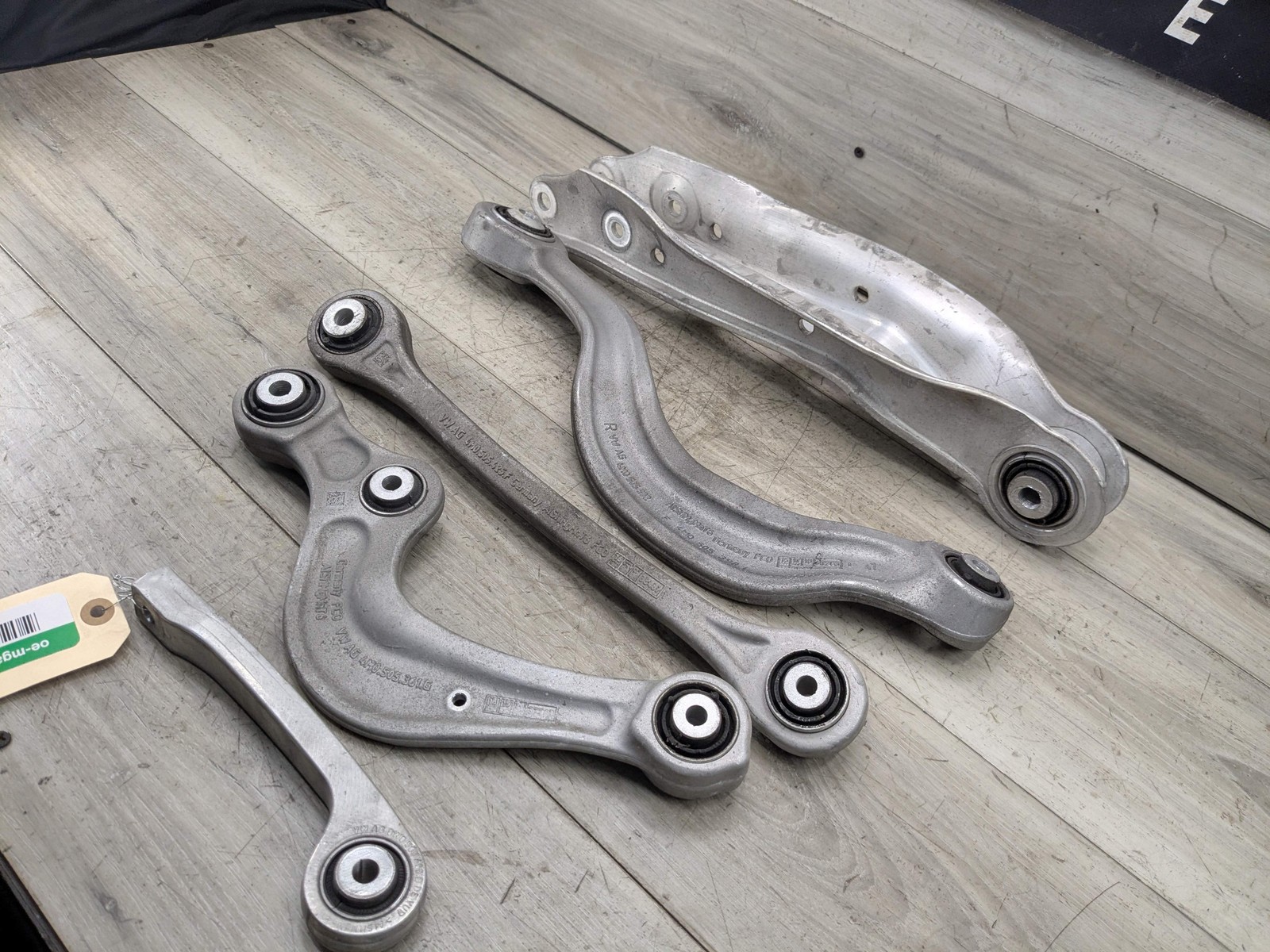 18-24 OEM AUDI Q5 SQ5 Rear Left Driver Upper Lower Control Arm SET SKU: 45467 Brand: Audi Condition: Used Notes: Set of 6! 30 Day Warranty! Manufacturer Part Number: 4M0505361 We're on Instagram! Follow us! oe_mgarage All parts are used unless otherwise noted! Please understand that being that parts are used there may be some wear and tear & scratches etc. We cannot guarantee the condition of paint & or that paint color will be an exact match as yours. We try to show as much of the condition as possible through photos and notes! Original Car: 2019 Audi SQ5 Series: SQ5 Vin Number: WA1B4AFY2K2001281 Mileage: 24922 Engine: CWGD Transmission: 1 Part number: 0, 4M0505361, 4M0501531, 4M0505372, 4M050129, 4M0505425, 8W0505465, 80A505311 Exterior Color Paint Code: 0E / Y9T SKU: 45467 Location: C249 Notes: Set of 6! 30 Day Warranty! 30 DAY WARRANTY!! Warranty covers the cost of the item! It does not cover shipping or labor! Used condition items may have minor imperfections. Please look at pictures for details! And understand that this is a USED part after all! Compatibility is the responsibility of the customer to ensure!! Please feel free to reach out with any questions!!
