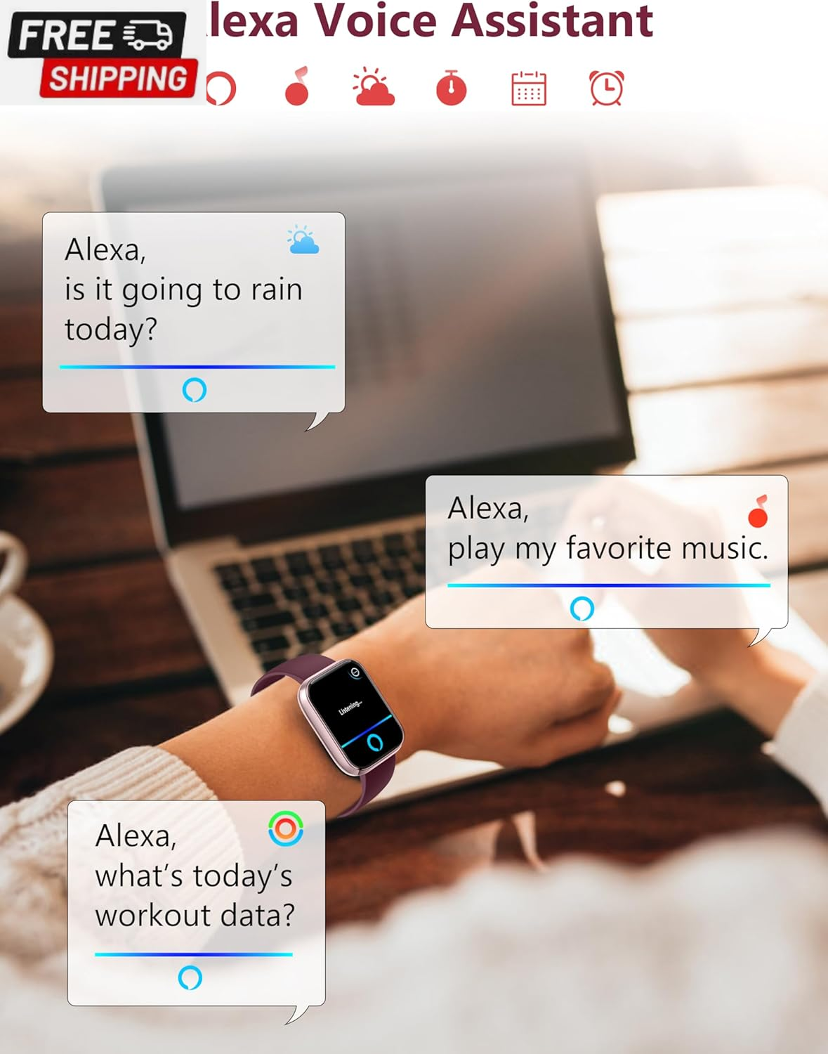 This smartwatch is a game-changer! The 1.83" screen is crisp, and the Alexa integration is super handy. Love that itโs IP68 waterproofโperfect for workouts. The heart rate monitor and 100+ sports modes keep me motivated, while calls and notifications work flawlessly. Battery life is solid, and the purple color looks sleek. Fast shipping, great customer service, and a satisfaction guarantee make it a no-brainer. Highly recommend!