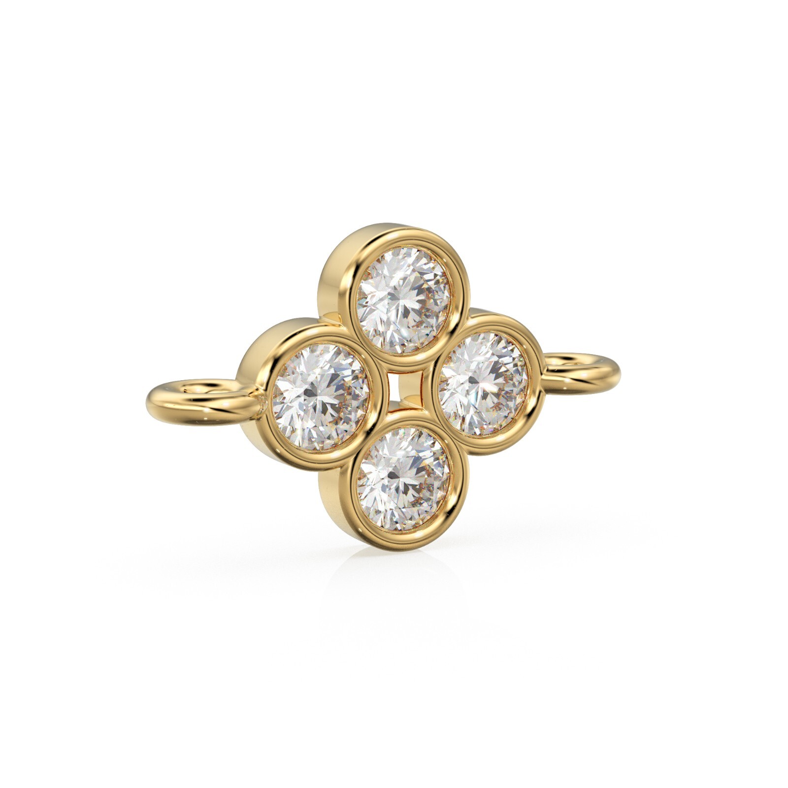 Diamond Clover 18k Solid Gold Connector / Four Stone Cluster Spacer Finding / Bezel Set Link Brilliant Cut Clover Quad Link St Patricks Day You'll get 1 pieces per purchase Size: 6.2mmx10mm, including the bails on both sides. Diamond Details: 2mm, Round Brilliant Cut MATERIAL: 18k Solid Yellow Gold, Natural Diamonds * Please note that gold orders are made to order in your choice of gold KT/color and beads drilled to choice, so please look at handling time carefully before placing orders.