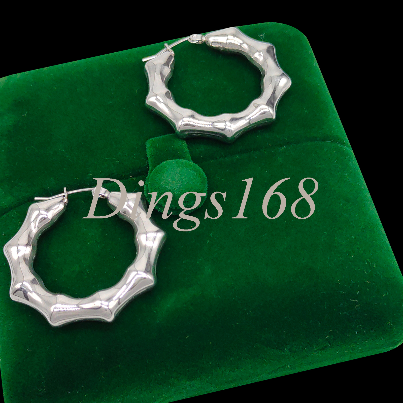 Product Description: This listing is for a pair of 38 mm x 38 mm (1.5x1.5 inch) wide, 6mm(0.24inch) thick 18K White Gold Filled over 316L Stainless Steel Bamboo Joint Round Latch Back Hoop earrings. It is hypoallergenic and waterproof, so you can do your daily routine without having to take it off. This timeless essential is the perfect gift idea for anyone - your significant other, family, friends, or for yourself. Give someone special luxurious fine jewelry to rock from day to night with style. It is covered under our 60-day 100% money-back guarantee. *** Free gift box included. Metal 18K White Gold Filled over 316L Stainless Steel Product Dimension Diameter: 38 mm x 38 mm (1.5x1.5 inch);Thickness:6mm(0.24inch) *** Please always refer to the description for the measurement of the product. Please do not judge the size based on the picture on your screen. The product may look larger or smaller based on your screen size. Weight 11.5 grams in total (5.75 grams each) Main Color White Product SKU FE2004W Note Gold filled jewelry is different from Gold Plated (GP)jewelry. Gold filled jewelry is made by heat and pressure bonding a layer (at least 25 micron thickness) of gold to some base metal core. It has all the great characteristics of solid gold jewelry. It does not flake off, tarnish or discolor. Gold filled jewelry is an economical alternative to solid gold. Gold plated is a method of covering another type of metal with a very thin, almost microscopic (usually 0.5-micron thick), film of pure gold by electroplating it. 18K gold contains 75% pure gold, while 14K contains 58.5% gold and 10K contains 41.7% gold. So 18K yellow gold has a deeper yellow hue than 14K or 10K. 18K rose gold is less blush-colored than 14K/10K. 18K white gold appears quite similar to 14K/10K white gold. Shipping Policy (U.S, APO, FPO, Puerto Rico, Virgin Islands) All products will be shipped from our warehouse in Morgan Hill, California, USA For USA buyers, we will ship your order by USPS (Postal Office) First Class Mail or Priority Mail (Please make your choice when you make payment). We ship within one working day once payment received. Payments received before 1:00PM will be shipped on the same day. We ship to all address, including physical address, P.O. Box address, Puerto Rico, Virgin Islands, Guam, APO, FPO etc. International Buyers We ship worldwide. Flat Rate shipping to all countries regardless of quantity. For packages of such small size, most countries usually do not charge importing tax. However, in case there is any in importing tax, Please Note: Import duties, taxes, and charges are not included in the item price or shipping cost. These charges are the buyer's responsibility. Please check with your country's customs office to determine what these additional costs will be prior to bidding or buying. Customs fees are normally charged by the shipping company or collected when you pick the item up. These fees are not additional shipping charges. We can not guarantee the exact delivery date for international orders. Customer Service & Return Policy We care about our valued buyers, if you have any questions, our Customer Service staffs will be very glad to help you. We try our best to reply to your emails as soon as possible, however, due to high volume of daily incoming emails and time zone difference, we may not be able to reply your emails immediately. You satisfaction is always our No. 1 concern. Our success is 100% based on your satisfaction and continuous support. No matter for whatever reason, if you are not 100% satisfied, you may always return the product for refund or exchange. Please e-mail us with a brief reason before returning a package. Feedbacks Dear buyers, we appreciate your business, if you are satisfied with our product and service, please leave us a positive feedback. Your recognition will make us more confident to develop business and serve you better. Our goal is to make sure you are a happy buyer and pleasant shopping with us. Please email us before leaving any 1 or 2 ratings, negative feedback or open any dispute. We understand the concerns and frustrations you might have, and will do our endeavor to resolve the issues. Please give us the opportunity to resolve any problem. For international buyers, when you rate the shipping time part please take international transit into consideration.