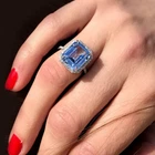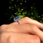 $ 1057.074.60 Ct Cushion Blue Sapphire Lab Created Diamond Engagement Ring 14K White Gold