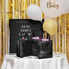 Package include: 18 black reusable gift bags and 18 matching tissues. Each gift bag has a cardboard card to prevent the bottom from bending and to keep the shape of the tote. The unique feature of these bags is that each bag will shine in different light, creating a beautiful reflection. Medium size: Each black bag measures 10.2 x 8 x 4.1 inches and is perfect for small gifts such as jewelry, gift boxes, necklaces, toys, dolls, etc. These bags are both beautiful and reusable, making them a new generation of party bags with more charm than paper bags. Durable and reusable: These black gift bags are made of polypropylene spunlace with aluminized film (store reusable bags are also made of polypropylene) that is not easily torn, waterproof and non-flammable. Applicable occasions: Suitable for party use or shopping stores, can be used as bridesmaid tote bags, wedding bags, party gift bags, goodie bags, shopping bags and other applications. DIY pattern: These non-woven bags are blank without pattern, use markers or stickers to decorate your bags, you can design these bags into the style you want.