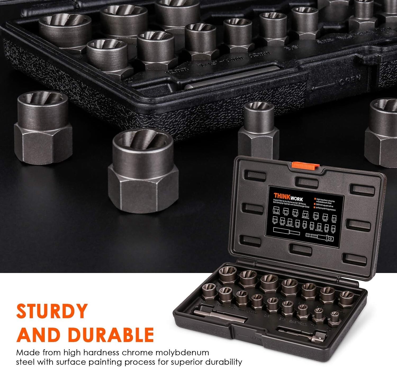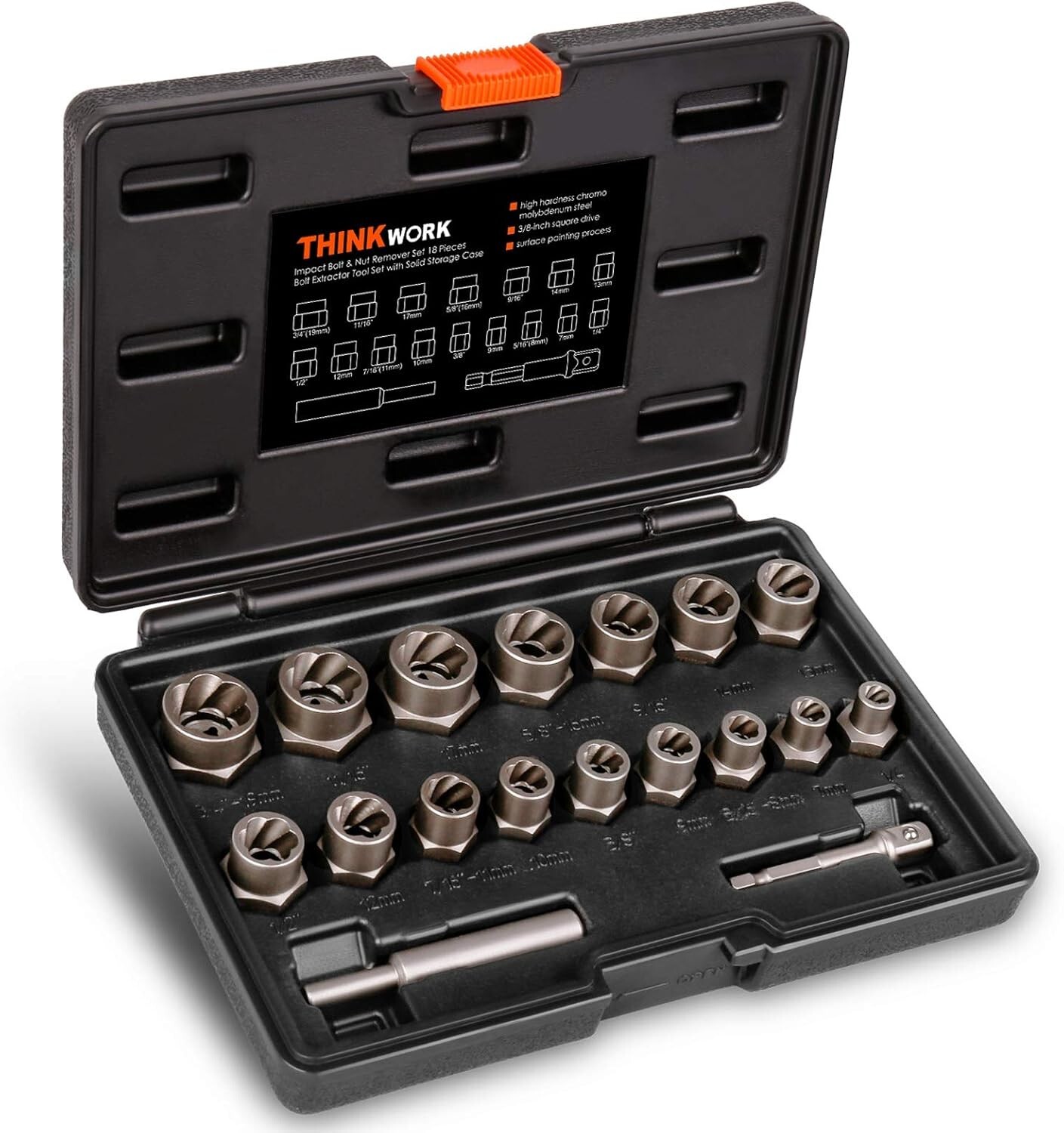 Bolt Extractor Kit 18-Piece Rusted Damaged Fastener Remover for Stripped Nuts ‹ › ‹ › ‹ › ‹ › ‹ › ‹ › ‹ › ‹ › ‹ › ‹ › ‹ › 18-Piece Bolt Extractor Kit Experience the exceptional power of our Bolt Extractor Kit , crafted specifically for rusted and damaged fasteners, ensuring you can tackle even the toughest stripping jobs. Key Features: High-Hardness Material: Each piece is made from chrome-molybdenum steel, guaranteeing superior durability and longevity. Powerful Grip: The internal thread with reverse spiral flutes is engineered to provide maximum gripping power—ensuring that the more you turn, the tighter it holds. Versatile Compatibility: The standard 3/8-inch square drive combined with a hex adapter makes this extractor kit compatible with hand, air, or power tools. Comprehensive Set: This 18-piece set includes sizes ranging from 1/4" to 3/4" (19mm), providing the versatility you need for various applications. Organized Storage: The heavy-duty blow-molded case ensures that your bolt extractor tools are neatly organized and easily transportable. Benefits: Effortless Extraction: Say goodbye to the frustration of stripped, rusted, or frozen bolts, nuts, and screws. Durable construction: Designed to withstand the rigors of frequent use, ensuring that you have reliable tools at your disposal for to come. Peace of Mind: Never worry about being unprepared—this comprehensive set equips you for any challenge! Why Choose Our Bolt Extractor Kit? Don’t leave your fastener issues to luck. The 18-Piece Bolt Extractor Kit is your trusted partner for all stripping and extracting needs. With its combination of high-quality materials, innovative design, and comprehensive selection of sizes, this kit offers unmatched reliability and efficiency. Whether you're a professional mechanic or a passionate DIY enthusiast, this will be an indispensable addition to your toolkit. Elevate your repair experience—order your Bolt Extractor Kit today and conquer rusted, damaged fasteners with ease! Shipping Free & Fast Shipping - We offer free shipping to most of the USA with a normal delivery time of 3-7 days. However, due to the current situation, additional delivery time (up to 3 weeks) may be required for some items. Alternative Carriers - We may use alternative carriers (e.g. USPS, FedEx, UPS, etc.) to ensure your package arrives safely and on time. Due to the use of multiple carriers, we are unable to provide a tracking number automatically. Handling Time - Orders are processed and shipped within 1-2 business days of receiving cleared payment. Shipping Restrictions - Shipping to Alaska, Hawaii, Puerto Rico, Guam, and other US territories may incur shipping charges or delivery restrictions. Please contact us before ordering, or your order can be refunded/cancelled. State Restrictions - There may be restrictions based on your state of purchase. For example, certain items may not be shipped to California due to state regulations. Contact for Tracking Updates - If you require tracking updates or have any concerns about the delivery of your order, please feel free to contact us, and we will be happy to assist you. Return 30-Day Hassle-Free Returns - We want you to be completely satisfied with your purchase. If you are not, you can return the item within 30 days of receiving it for a full refund or exchange. Easy Return Process - To start a return, simply contact us and we will provide you with a prepaid return shipping label and detailed instructions. Restocking Fee - There are no restocking fees for returns. However, the buyer is responsible for return shipping costs if the return is not due to a seller's error. Refund Processing Time - Refunds will be processed within 5 business days of receiving the returned item in its condition. Payment We accept all major credit cards, PayPal, and Apple Pay for your convenience. Your payment information is secure and encrypted to ensure a safe and seamless transaction. Please complete your payment within 3 days of purchase to avoid any delays in shipping. Feedback Your feedback is extremely important to us. We strive to provide the best products and customer service possible. If you are satisfied with your purchase, please take a moment to leave us a positive review. If you have any concerns or issues with your order, please contact us before leaving negative feedback. We are committed to resolving any problems and ensuring your satisfaction. Contact Us If you have any questions or concerns, please feel free to out to our customer support team. You can contact us through the eBay messaging system. We are available Monday to Friday, 9:00 am to 5:00 pm EST, and we will do our best to respond to your inquiry within 24 hours. Buy it now and enjoy a pleasant shopping experience! Model: Bolt Extractor Kit Item Height: Bolt Extractor Kit Item Depth: 5.2 cm Unit Quantity: 1 Suitable For: Air Compressor,Air Drill,Angle Grinder,Buffing,Cement,Commercial,Drill,Drywall Compound,Grout,Grout Mixer,Lathe,Liquid,Mortar,Orbital Sander,Oscillating Tool,Paint,Plaster,Polishing,Residential,Rotary Tool,Thinset Mortar,Tile Adhesive,Work Bench Type: Nut Extractor Socket Set,Bolt Extractor Kit,Stripped Fastener Remover Application: Cutting,Grinding,Grinding/Sanding,Grinding and Cutting,Mixing,Removing Number of Items in Set: 18 Package Quantity: 1 Material: Chrome Molybdenum Steel Color: Black Item Diameter: 3/8 in Item Weight: 1 lb Unit Type: Unit