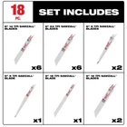 18-Piece SAWZALL Wood And Metal Cutting Bi-Metal Reciprocating Saw Blade Sets The MILWAUKEE 10-Piece SAWZALL Blade Set plus 8 FREE blades offer an assortment of wood and metal cutting SAWZALL blades for a wide range of applications. Milwaukee SAWZALL Blades feature an optimized tooth design that provides a longer life over standard bi-metal blades and are ideal for fast, flexible cuts. This set also includes an innovative job site durable case for convenient blade storage. Highlights NAIL GUARD combines an aggressive 5 TPI pattern for faster cutting, with a unique design that protects against tooth fractures FANG TIP design bites into wood on first contact for faster plunging Offers longer blade life over standard bi-metal blades Matrix II bi-metal teeth for greater durability Jobsite durable storage case holds up to 9 in. blades Precision forming process creates sharper teeth for fast cutting 1/2 in. Universal tang Made in USA Includes: 10-Piece SAWZALL blade set plus 8 free blades Shipping Policy FREE SHIPPING in all orders! Orders are usually processed and shipped out after 72 HOURS during BUSINESS DAYS (Monday to Friday) after payment has been received. But please be reminded that we are NOT processing and shipping orders during WEEKENDS and HOLIDAYS. Please make sure your ADDRESS is VALID for both UPS and USPS COURIER SERVICES. Please be reminded that costs incurred due to INCORRECT or UNDELIVERABLE ADDRESS should be shouldered by the buyer. The shipping services that we use are UPS, FedEx, USPS etc. We ONLY ship to the 48 STATES, NO APO/FPO ADDRESSES or PO BOXES. We DO NOT ship to warehouse, freight company. Local pickups and combined shipping options are NOT provided at this time. Return Policy DOMESTIC RETURN ACCEPTED - 30 DAYS. Contact us for more information. Payment Policy We accept payment by any of the following methods: PayPal Items can be returned for exchange or full refund WITHIN 30 DAYS from the date you receive your merchandise. We are not responsible for any purchase after this 30-day period. Feedback & Contact Us Customer satisfaction is very important to us. If you have any problem with your order, please contact us and we will do our best to make you satisfied. If you have any queries, please contact us via Ebay. We usually respond within 24 hours on weekdays. Thank you for shopping at our store.