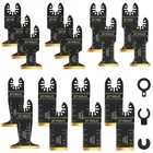 18 PCS Titanium Oscillating Tool Blades Metal Cutting, Universal Multitool Blades for Metal Wood Plastic, Multi Tool Blades Kits Fit Dewalt Ryobi Milwaukee Rockwell Fein,Gifts for Men About this item 【High Efficiency】Compared with ordinary saw blades, oscillating tool blade with Titanium coated teeth for heat resistance, long life. the hardness of titanium saw blades is increased by 50%, and the service life is extended by 2X. 【4 Types 18PCS Titanium Oscillating Saw Blades】BTYEEUYI oscillating saw blades set includes 4 different types of oscillating multitool blades, 6pcs 1-3/8"inches, 6pcs 1-3/4"inches, 4pcs extra long 1-3/4"inches and 2pcs extra wide 2-1/2" inches.It can help you solve variety home repair or renovate work. 【2PCS Extended Multitool Blades】2-1/2'' Extended cutting width can cover more work application. Ideal for cutting larger diameter metal, plastic and copper pipes, or cutting large areas floor etc. 【Variety of Applications】Titanium Oscillating Saw Blades is perfect for cutting metal, nails, copper pipes,aluminum sheet,door frames,construction wood,plastics & drywall,flooring and more.Home remodeling business, window installation, cut nail impregnated wood, door frames, flooring work, trimming, and adjustment work.(Note:Not suitable for cutting screws and bolts.) 【Wide Compatibility with 3 Adapters】With a universal interface system, it is perfectly compatible with more than 98% of the oscillating tools on the market. With 3 clips adapter,compatible with Dewalt, Milwaukee, Bosch, Fein, Makita, Dremel, Ridgid, Craftsman, Rockwell, Black & Decker, Porter Cable, Ryobi and more!(Note: Not fit for the oscillating tools of the starlock and starlock plus interface systems.) 【Gifts For Men】BTYEEUYI Oscillating Tool Blades Kit make the perfect gifts for both men, dad, and boyfriend, offering a unique and practical gift choice for various occasions like Christmas, Thanksgiving, birthday, anniversaries, Valentine's Day, Father's Day, Cool stuff for men who have everything. Each of these cool gadgets for men arrive ready to give to a dad, husband, friend, or avid DIYer who has everything and wants nothing.