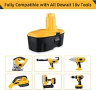 ใ๐๐๐ญ๐ญ๐๐ซ๐ฒ ๐๐ฉ๐๐๐ฌใCapacity: 5.0Ah, Type: NI-MH, Voltage: 18V, Wattage: 90Wh, that can replace the Dewalt DC9096 original battery ใ๐.๐๐๐ก ๐๐ข๐ ๐ก ๐๐๐ฉ๐๐๐ข๐ญ๐ฒใBrand new Upgraded 5000mAh Capacity, Totoplus battery longer running time than original battery ใ๐๐จ๐ฆ๐ฉ๐๐ญ๐ข๐๐ฅ๐ ๐ฐ๐ข๐ญ๐ก ๐๐๐ฐ๐๐ฅ๐ญ ๐๐๐ ๐๐จ๐ซ๐๐ฅ๐๐ฌ๐ฌ ๐๐จ๐จ๐ฅ๐ฌใReplacement battery for Dewalt 18v XRP battery, compatible with Dewalt DC9096 DC9098 DC9099 DW9095 DW9096 DW9098 DE9038 DE9039 DE9095 DE9096 DE9098 series ใ๐๐ฆ๐๐ซ๐ญ ๐๐ซ๐จ๐ญ๐๐๐ญ๐ข๐จ๐งใThe battery with overheat protection, over-voltage protection, over-current protection, over-charge protection and short circuit protection etc ใ๐๐ก๐๐ญ ๐๐จ๐ฎ ๐๐๐ญ ?ใ2 pack 18V 5.0Ah DC9096 batteries, user manual, if you have any questions, please do not hesitate to contact us Product Description Replacement for Dewalt 18V Battery & Cordless Power Tool Replacement PN: DC9096, DC9098, DE9039, DE9503, DE9095, DE9096, DW9096, DW9095, DW9098, DE9098 Compatible with: Compatible with Dewalt Cordless Reciprocating, Jig, Circular, Chain, Band, and Table Saws: DWHT66387 DWHT55524 DWHT20123 DW938K DW938 DW936K DW936 DW934K2H DW934K2DW932 DW933 DW933K DW934 DCS385L,DCS372KA DCS372B DCS370B DCS370L DCS370K DCS331N DCS331L2 DCS331L1 DCS331M1 DCS331B DCS330L DCK251X DCD960KL DC390N2; Compatible with Dewalt Cordless Drills and Drivers: DWST08203 DW997K-2 DW959K-2 DW621 DW960 DW987 DW988 DW989 DW995 DW997 DW987KQ DW988KQ DW960B DW960K,DCSM60 DCSD62LPB DCF826KL DCD985L2 DCD985B DCD980L2 DCD970KL DCD959VX DCD959KX DCD950VX DCD950KX3; Compatible with Dewalt Cordless Impact Wrench: DW059KH-2 DW059K-2 DW059HB DW059B DW059 DW057N DW057K-2 DW057K DW056N DW056KS DW056K-2 DW056K DW056,DCF059KLDC841KA DC830KA DC823KA DC823B DC822KL DC821KA DC820KB DC820B DC820KA DC8204; For Cordless Drills and Drivers: ( Please Use the "Ctrl+F") DWST08203, DW997K-2, DW959K-2, DW621, DW960, DW987, DW988, DW989, DW995, DW997, DW987KQ, DW988KQ, DW960B, DW960K, DCSM60, DCSD62LPB, DCF826KL, DCD985L2, DCD985B, DCD980L2, DCD970KL, DCD959VX, DCD959KX, DCD950VX,DCD950KX For DEWALT Cordless Impact Wrench: DW059KH-2 DW059K-2 DW059HB DW059B DW059 DW057N DW057K-2 DW057K DW056N DW056KS For DEWALT Original Cut-Out/ Cut-Off Tools: DCG411KL DC550KA DC550B DC550 DC411KL DC411KA DC411B DC410N DC410KB DC410KA DC4106 For DEWALT Original Cordless Nailers and Staplers: DC608K DC616K DC618 DC618K DC618KA DC628K DC608B D28493N7 For Original Cordless Screwdrivers: DC668KA DC520KA9 DC495KA DC495B DC490KA DC490B8 Replacement PN: For XRP DC9096, DC9098, DC9099, DW9095, DW9096, DW9098, DW9099, DE9039, DE9095, DE9096, DE9098, DE9503. NOTE: NOT compatible for DEWALT 18V brushless nailers DCN45RNN, DCN45RND2, DCN694P2, DCN692P2, DCN692M2, DCN660, DCN692N Safe & Stable Hard Shell Protection High Quality Battery Cells Protection Circuit Design Anti Leakage lnterface Quick Release Button/Precise Interface/Hard Shell With an easy-to-use release button, a light press allows the battery to be easily removed, ensuring smooth and convenient battery changes The precise interface perfectly matches Dewalt cordless power tools, just like the original Dewalt battery The thickened and hard shell can protect the battery well, and it will not affect normal use even if it falls from the air accidentally