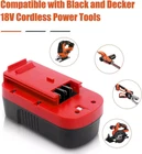 Product Description: About US: We focus on designing and manufacturing varieties of Power Tool batteries with high quality and competitive price.We will do our best to serve you! Item Specification: 1.Type:Rechargeable replacement battery For Black Decker 2.Battery Voltage : 18V 3.Capacity : 3000mAh/3600mAh/3800mAh 4.Battery Composition:Nickel-Metal Hydride (NiMH) 5.Material: made with the high quality materials 6.Warranty : 10 Year Warranty +90 Days Money back. Note: This product has 3 electronic prongs and the third branch is used to monitor the temperature of the battery pack during charging the thermistor, but it is still suitable for the replacement of the old 2 prongs black & decker 18v battery. Replace P/N: For Black Decker 244760-00, A1718, A18, HPB18, HPB18-OPE Firestorm A18, FS180BX, FS18BX, FS18FL, FSB18 Replacement Original battery model:(use"Ctrl+F" to find your own PN & Model) For Black Decker 18 Volt Power Tools BD18PSK, BDGL1800, BDGL18K-2, CD182K-2, CD18SFRK, CD18SK-2, CDC180AK, CDC180ASB, CDC18GK2, EPC182K2, EPC186BK, EPC188BK, EPC188CBK, EPC18CABK, EPC18CAK, EPC18K2, FS188F4, GCO18SFB, GCL2500, HP188F2B. HP188F3B, HP188F3K, HP188F4BK, HPD1800, HPD18K-2, HPG1800, HPG18K-2, NHT518, NPP2018, NPT3118, NS118, NST1810, NST2018, NST2118, PS182KB, PS18K2, SS18, XTC183BK, XTC18BK Firestorm 18 Volt Power Tools FS1800CS, FX1800D, FS1800D-2, FS1800ID, FS1800JS, FS1800RS, FS1802D, FS1802S, FS1806CSL, FS18CS, FS18HV, FS18ID, FS18PS, FS18PSK, FS18RS, FSL18 (Flash Light), FSX1800HD, FSX18HD Package Includes: 1/2/4 x 18 Volt Ni-MH Battery For Black Decker 2.0Ah 1/2/4 x User's Manual NOTE: 1. The battery must be FULLY charged before first use. 2. The battery is stored in a cool and dry place. 3. Do not Separation, extrusion, and impact. 4. Do not put battery into water and fire. 5. Keep away from children.