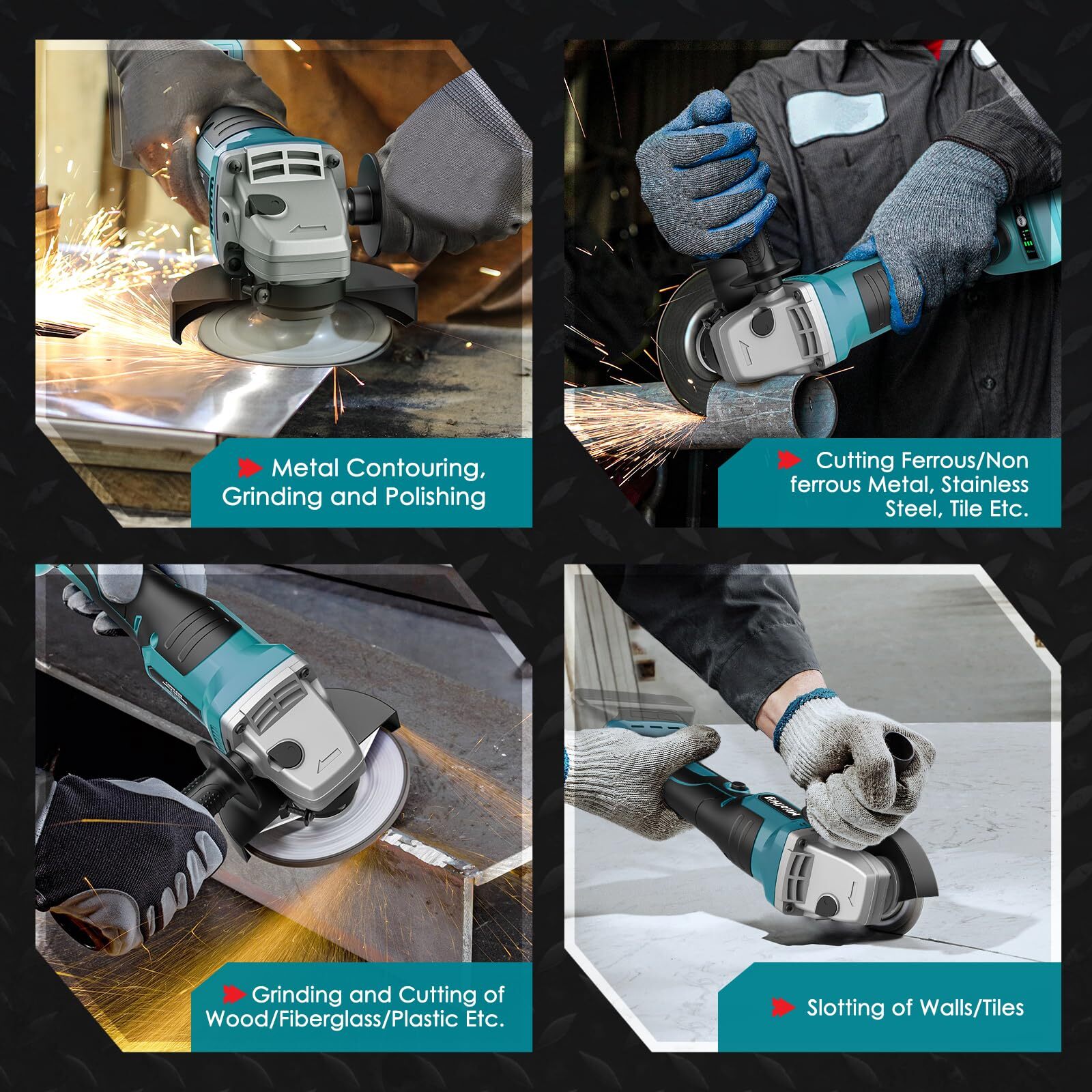 This angle grinder is a beast! Super smooth and powerful with the Makita 18V battery, hitting 8500 RPM effortlessly. The brushless motor runs cooler and lasts longer, while the variable speed gives perfect control for different materials. Love the safety features and adjustable handle—feels solid and secure in hand. No cord means total freedom to work anywhere. A must-have for DIYers and pros alike!