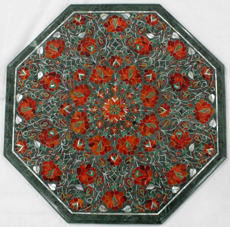 $ 319.4121" green marble table floral inlaid pietra dura marquetry work home decor