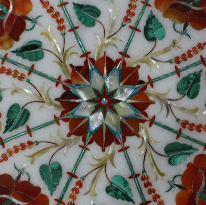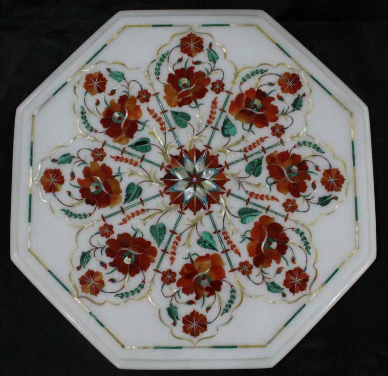 $ 268.43Handmade 21" Marble Table Top with Semi-Precious Stone Floral Inlay