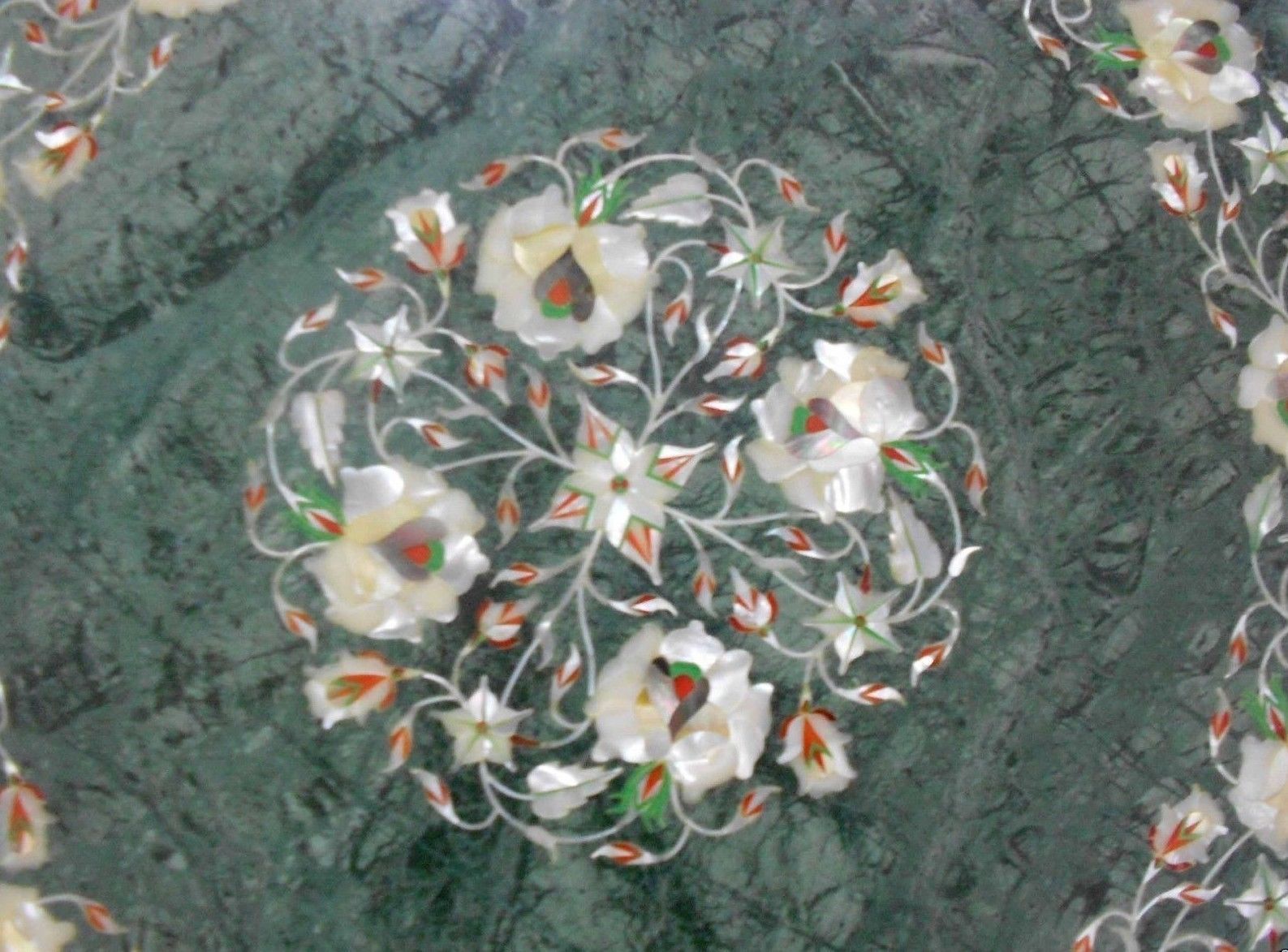 If You Are Looking Something Customize, Let Us Know We Will Make For You As Per Your Design, Size & Shape. What is Inlay Art? One of the most attractive work of art that comes from marble is"Marble Inlay" work. It is the same work that adorns the Taj Mahal and other Mughal monuments. It is a closely protected traditional art and only a few expert exponents are available today. The delicate process involves cutting and engraving marble shapes manually. To start with, a predefined pattern e.g., floral design or geometrical design is engraved on the marble slab. Small pieces of marble of different shades are cut delicately to fit in these grooves precisely. These small pieces are then slipped in the grooves. Apart from marble, many other materials can also be used. History Of Inlay Art Inlay work on delicate precious stone began in the workshops of Florence in Italy around the end of the 16th century. This was known as PIETRA DURA.(Pietra= Stone, Dura= Hard) The Italians had created a classic artistic form and held a monopoly over it. From 1630 onward pietra dura appeared on movable, small objects as decorative panels, with bird and flower motifs, suitable for cabinet fronts and table tops. Some of these soon reached the Mughals in the form of presents. Of all the Mughal Emperors, Shah Jahan was the greatest patron of architecture in India. For him no amount of money or time was too much to create enduring, everlasting architectural beauty and through it be remembered always. It is in his buildings that one feels most compelled to make the connection between Mughal art and pietra dura. The Taj Mahal, the cenotaphs of the Emperor and his wife, the main floor and the surrounding marble railings bear very close resemblances to the pietra dura form. Process of Marble Inlay Art Master Craftsman carefully plans a design, which is etched lightly into the marble surface and later scored out with an iron chisel. Many of the tools of the trade are basically the same as those used by the Mughals hundreds of years ago. He then decides on the colour scheme depending on the requirements of piece being created. Semi-precious stones and gems are expertly chosen to give just the right graduation in colour and shade for the overall radiance of the pattern. They are shaped and polished by means of an emery wheel. Sometimes heat treatment is applied to certain stones to get a shading effect. The effort involved in making just one single flower can often take days of work, depending on the detail; it is not unusual to be designed from hundreds of different slices of stone. There are many varieties of coloured stone available for utilisation in marble inlay work: malachite, cornelian, jasper, mother of pearl, abalone shell, lapis lazuli, agnate, coral, turquoise and tiger eye to name just a few. The grooves are filled with their precisely corresponding shapes of coloured stone and secured in place with a white putty made from oil, and wax. Once the design is completely dry, the piece is polished with a mixture of sand, water and emery paper to give a shiny smooth finish. Note:- Customs Duty and other duties levies in destinations country are responsibility of the buyer