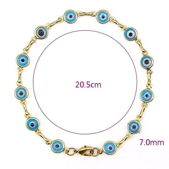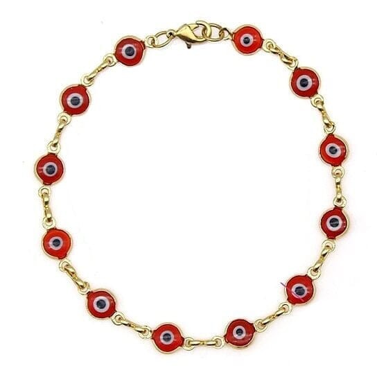 Title 18k Gold Filled High Polish Finsh Evil Eye Bracelet PRODUCT DESCRIPTION Elevate your jewelry collection with our stunning 18k Gold Filled High Polish Finish Evil Eye Bracelet. Crafted with precision, this beautiful accessory features a vibrant evil eye charm that serves as a powerful symbol of protection and good fortune. The high polish gold finish adds a luxurious and radiant shine, making it an eye-catching piece for any occasion. Designed for versatility and style, this women’s evil eye bracelet measures 8 inches, perfectly suited to fit most wrists comfortably. Available in captivating multicolor options—red, blue, and turquoise—each bracelet adds a pop of color and personality to your look. Whether you're heading to the beach or attending a special event, this bracelet is a must-have accessory to complement any outfit. Premium Quality: Made with 18k gold filled material for durability and lasting shine Vibrant Multicolor Options: Red, blue, and turquoise to match your style Ideal Gift: Perfect for gifting on occasions like Mother’s Day, Christmas, Valentine’s Day, birthdays, or just because Protective Symbol: The evil eye charm is believed to ward off negative energies and bring good luck Enhance your jewelry collection today with this elegant and meaningful 18k Gold Filled High Polish Finish Evil Eye Bracelet. Its timeless design and symbolic charm make it a thoughtful gift or a personal staple. Don’t miss out—add this captivating piece to your cart now and enjoy a blend of beauty, protection, and style! Powered by