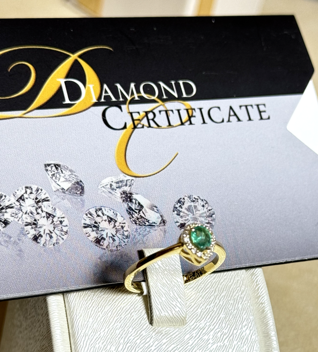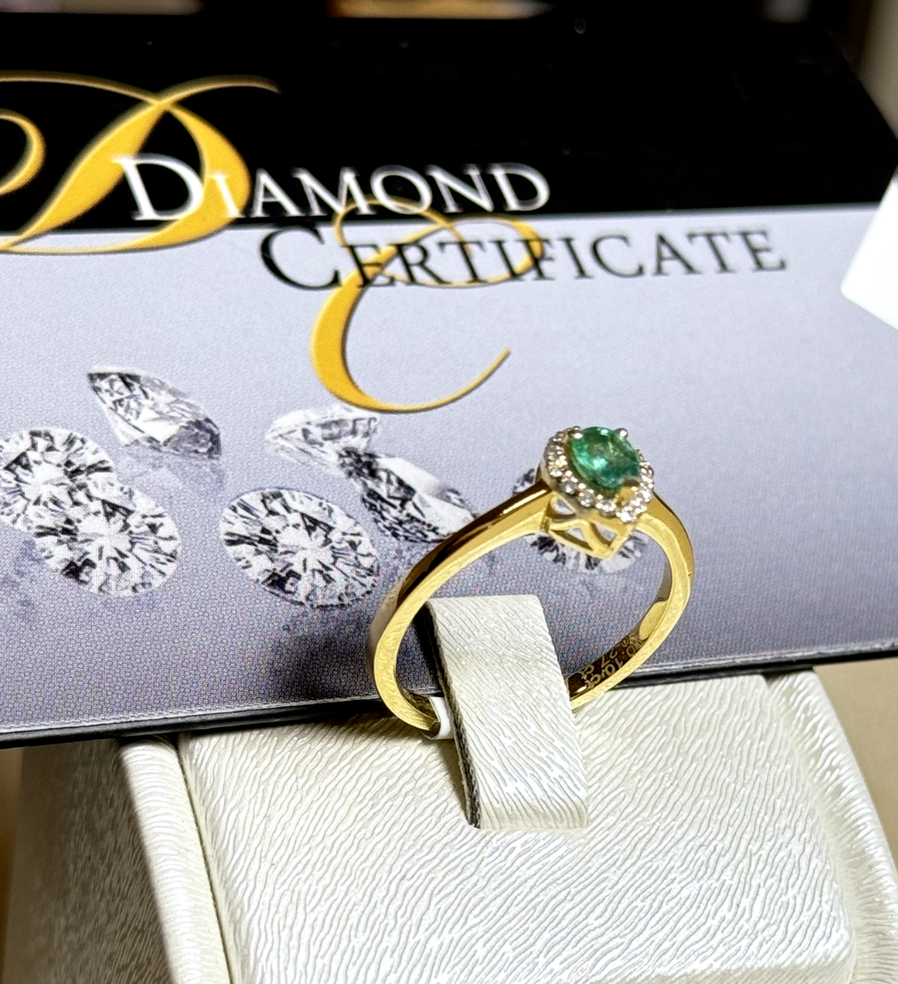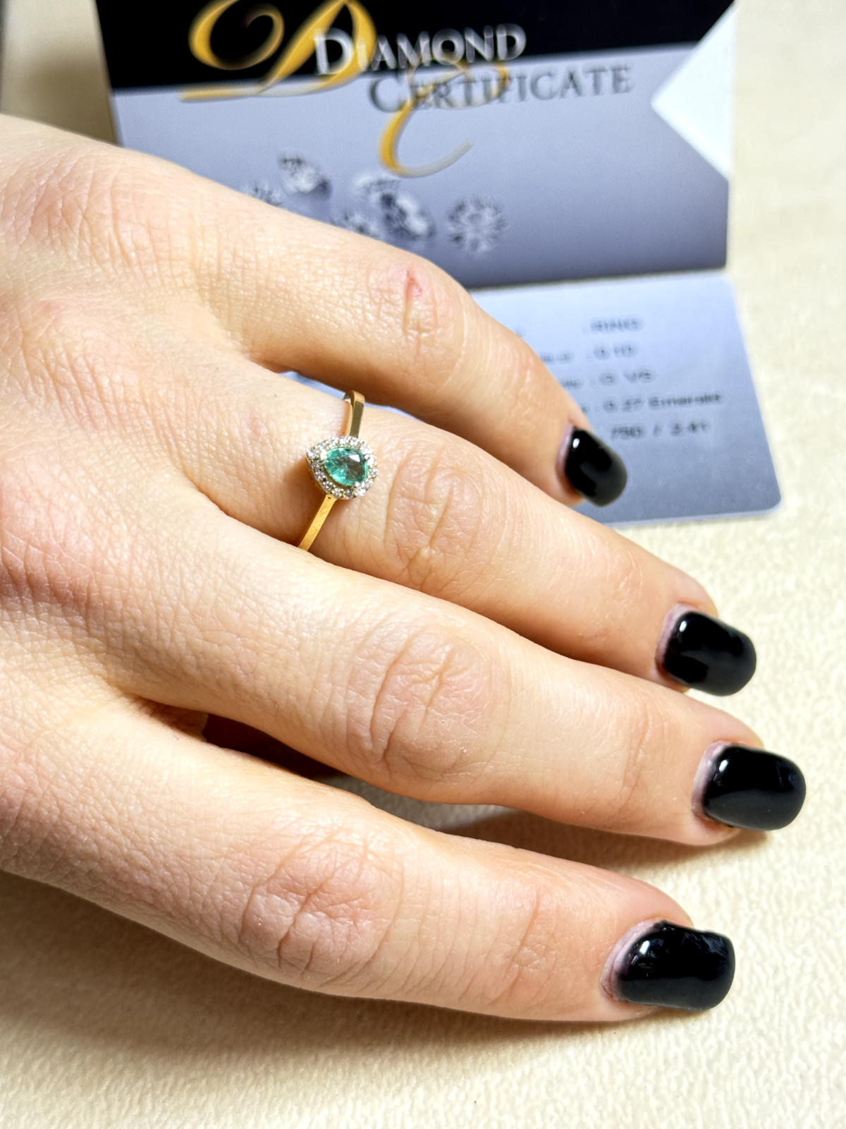 Ring Yellow Gold 18k 750 Emerald 0.27ct & Diamonds 0.10ct Certified 2.41grams TYPE:ring GANDER:lady MATERIAL:yellow gold 18k 750 WEIGHT RING:2.41grams SIZE RING:12 STONE:Emerald 0.27ct natural / diamonds 0.10ct total G VS CONDITION:NEW THE ITEM YOU SEE IN THE PHOTO IS THE ONE YOU RECIVE, SO PLEASE SEE THE PHOTOS, THE SHIPPING COST IS 39 $ , THE ESPECTED TIME IS 3-5 DAYS, WE ACCEPT PAYMENT WITH PAYPAL, ONLY VIA REGISTRED MAIL, WE SHIPP WORLDWIDE, IF YOU HAVE ANY UNCERTAINLY BEFORE BIDING. PLEASE CONTACT ME THANKS.
