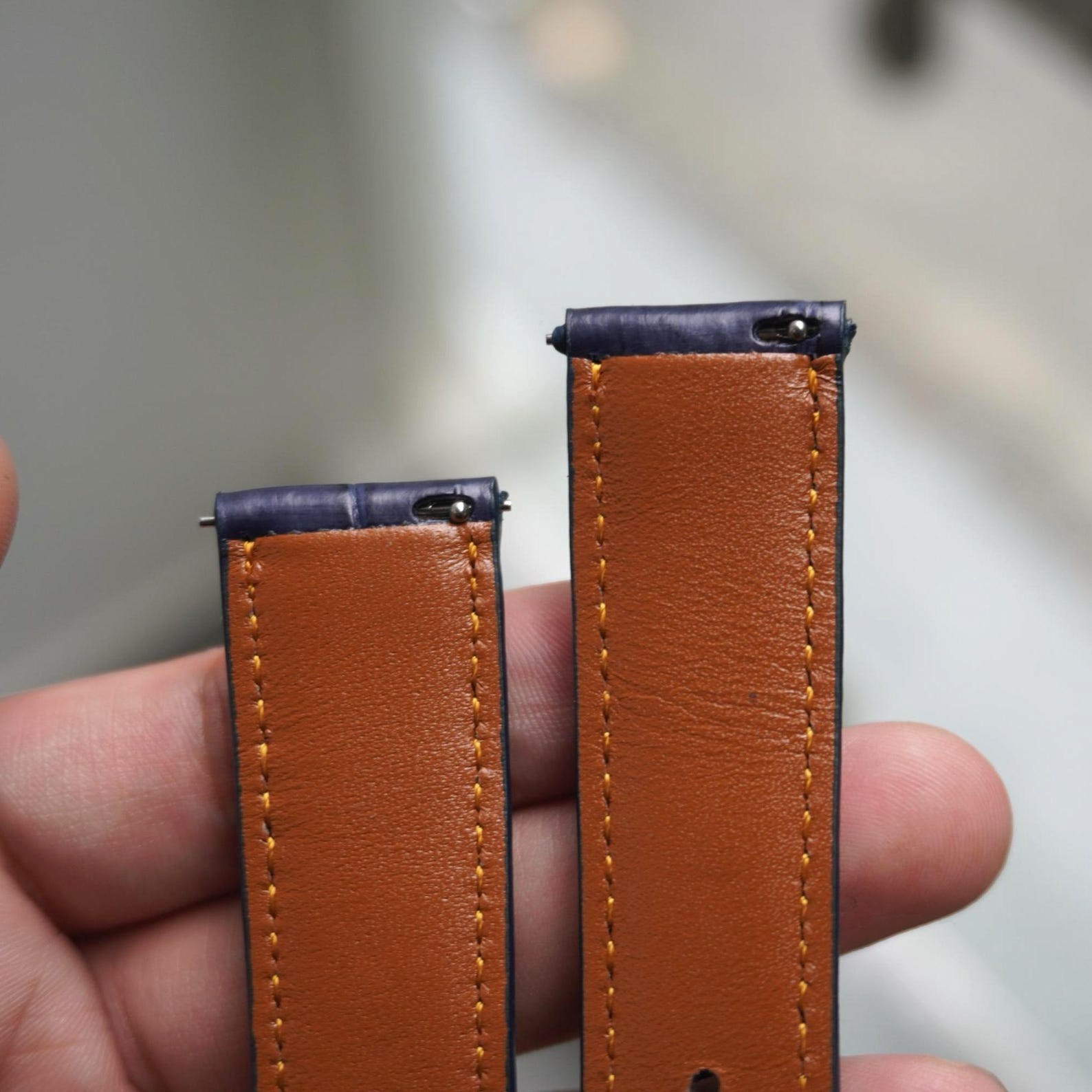- Color: Navy Blue - Exterior material: Genuine crocodile leather - Interior material: Genuine cowhide - Band Size : Lug width 18mm / Buckle width 16mm - Length: long band 125mm - short band 75mm - Thickness: 4mm - 2mm - The strap comes with: 1 Watch strap + 1 Silver Buckle + 2 Quick Releases We have always been tried to provide the best service and reliable products for every customer. However, accidents may happen sometimes. Could you please contact us to solve any issues before leaving feedback. If having any question, please feel free to contact us by ebay message center.