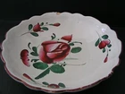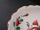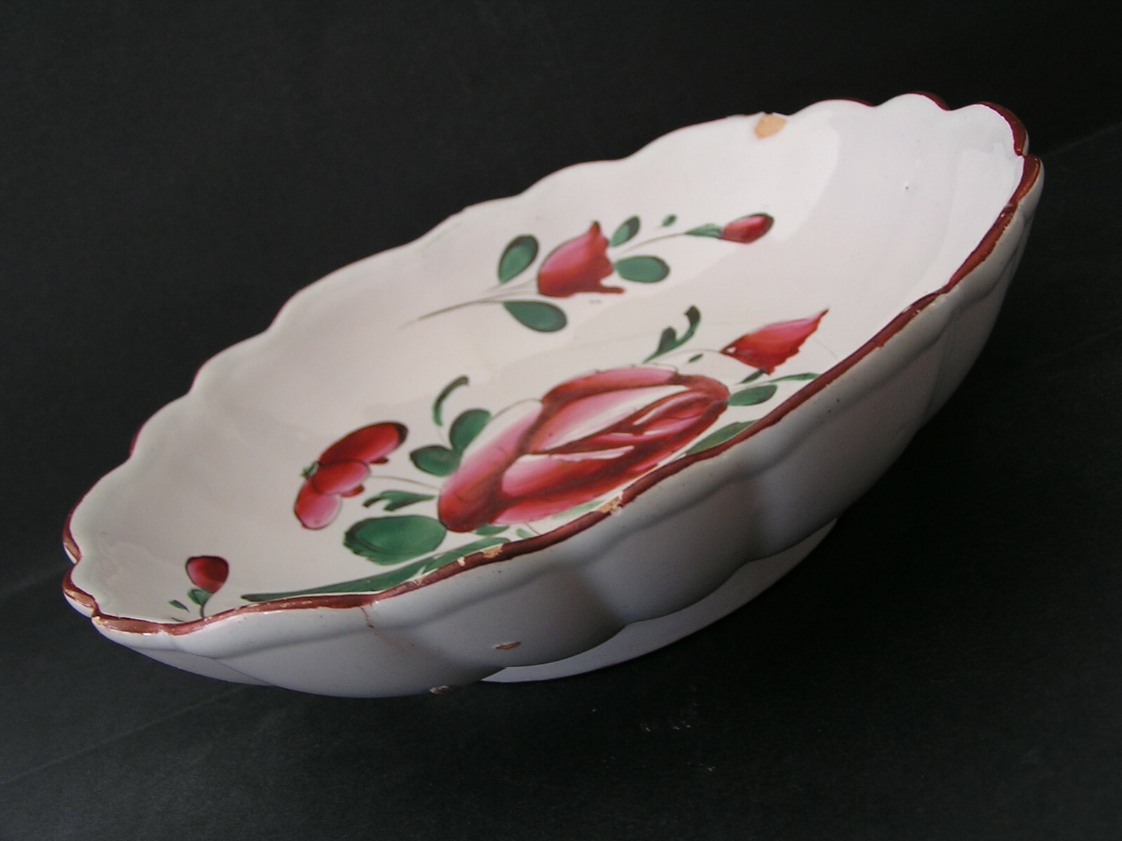 Ancien Drageoir/Compotier en Faience de l'Est,Les Islettes décor à la Rose et trois fleurs sur le marli...Quelques éclats sur la bordure, pas de fèle ni restauration... Diam: 20 cms. Haut: 5,5 cms.