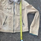 18x21.5 size L vintage y2k 2000s Aeropostale faux fur collar jacket. Fits super perfect because its shorter than most jackets and the faux fur is great quality and looks great irl. This is a retired personal for me nowadays. #fur #fauxfur #vintagejacket #aeropostale #2000s faux fur collar, cropped jacket, 2000s style, retro outerwear, beige bomber, quarter zip, authentic vintage, Y2K fashion, soft texture, casual cool