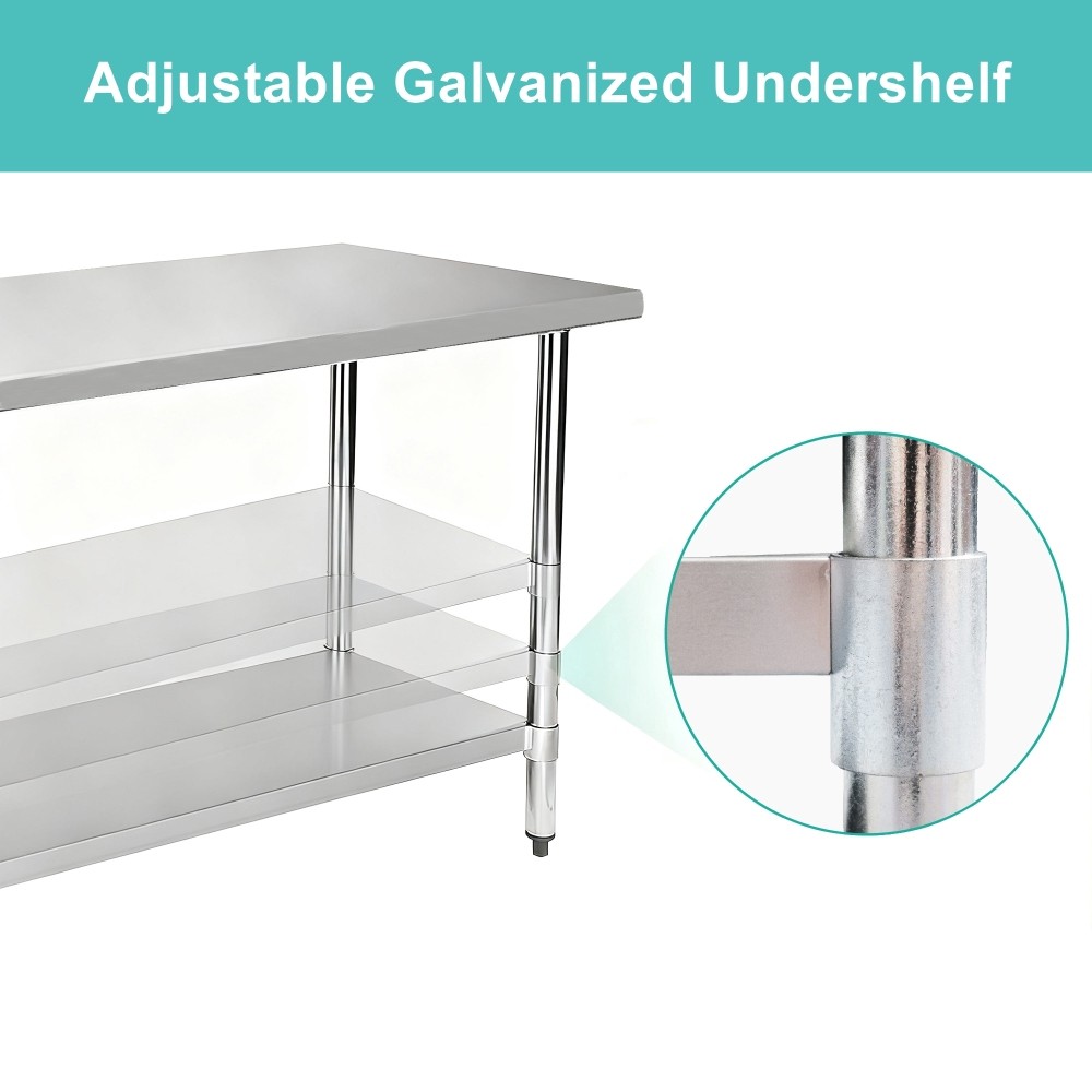 Compact Stainless Steel Commercial Work Table - 18"x30" Perfect for restaurants, cafes, and catering operations short on space, this heavy-duty worktable blends rugged performance with smart design to streamline your kitchen workflow. Crafted from 18-gauge 201 stainless steel, it boasts superior resistance to corrosion, rust, and stains—delivering a hygienic, long-lasting surface ideal for food prep, tool organization, and daily kitchen tasks. NSF certified to meet top-tier food safety and sanitation standards, this table is a trusted choice for commercial settings where cleanliness is non-negotiable. Its space-saving assembled dimensions (18.00"W x 30.00"D x 35.40"H) fit snugly in tight areas, while the integrated undershelf adds valuable storage for equipment and supplies—keeping your workspace clutter-free and efficient. Galvanized steel legs ensure maximum stability, supporting the table’s 34.83 lbs weight for reliable heavy-duty use. Designed with convenience in mind, setup is quick and straightforward, and the smooth stainless steel surface wipes clean effortlessly—saving time for busy foodservice teams. Securely packaged in a box measuring 21.87"L x 39.40"W x 8.27"H (42.11 lbs total), it arrives protected and ready for assembly. Purchase with Confidence: ✅ 1-Year Manufacturer’s Warranty: Coverage against manufacturing defects for total peace of mind. ✅ 30-Day Free Return & Exchange: No-hassle returns or exchanges if you’re not fully satisfied. Whether you’re prepping ingredients, staging tools, or need a stable extra workspace, this versatile table delivers the durability, hygiene, and functionality commercial kitchens demand—all in a compact footprint that maximizes every inch of your space.