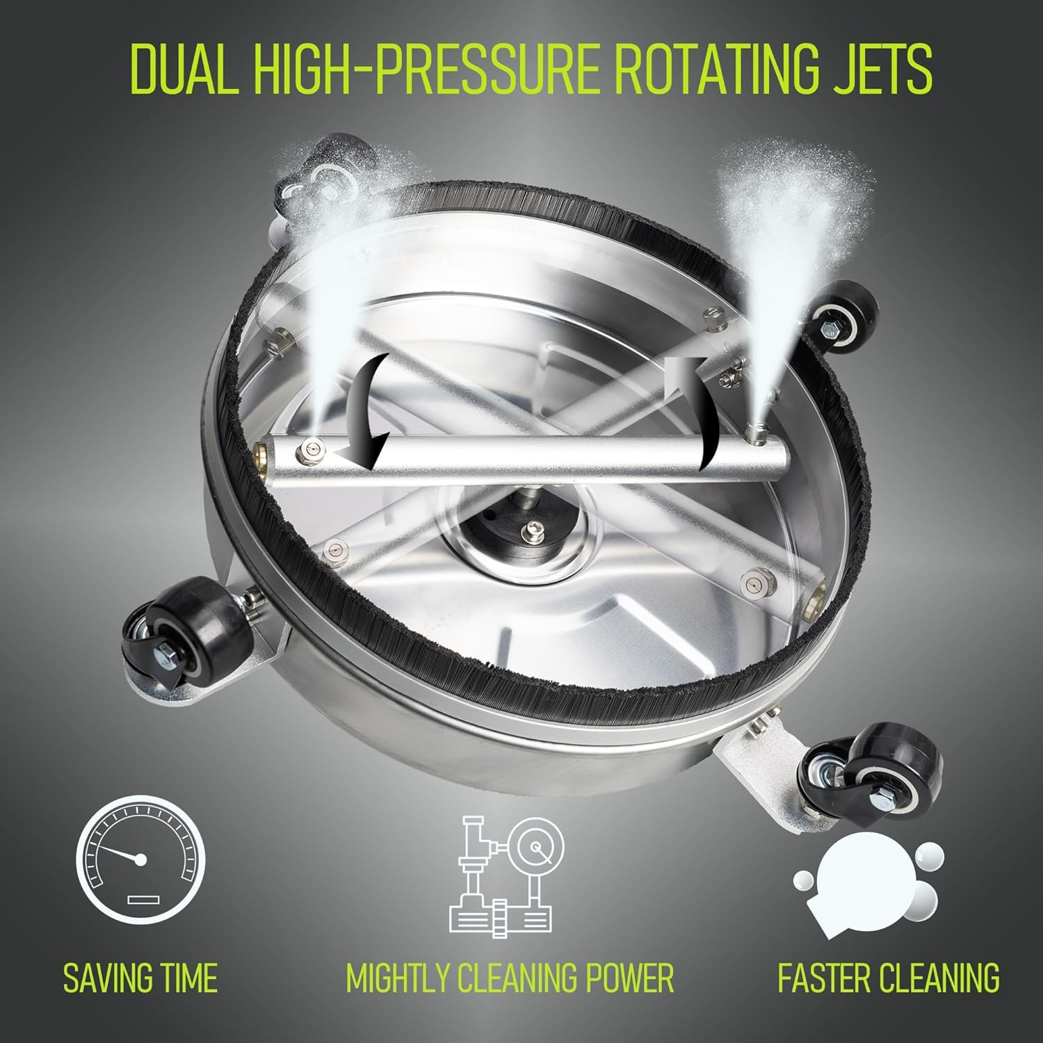 This pressure washer surface cleaner is a game-changer! The 19" stainless steel design glides smoothly on four wheels, making it perfect for driveways, patios, and decks. I love the quick-connect feature and the included extension wands—they make cleaning large areas effortless. The 4000 PSI power blasts away dirt and grime without damaging surfaces. The extra nozzles, O-rings, and thread seal tape are nice bonuses. Highly recommend for anyone wanting professional-level cleaning without the backache!