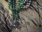 19 MARDI GRAS BEADS NECKLACES MOTORCYCLE BIKE RALLY THROW BEAD BIRTHDAY PARTY. The gray beads pictured last are not Mardi GRAS but is a long vintage necklace included just for fun. Also please note that 5 of the beads are in shape of shamrocks great for St. Patrick's Day!