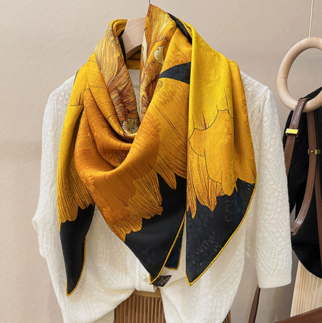 I love my gorgeous silk scarf which is more beautiful than the picture!! Exactly what I wanted and looks perfect with my sweater! I was amazed by how quickly it arrived— I got an excellent price on the scarf and on shipping, too! I will definitely keep this seller!! THANK YOU SO MUCH!!