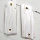 Very RARE Pair of 1911 full size Genuine MOP Handmade 1911 Genuine MOP GRIPS Colt Full Size Government EQUIPPED WITH AN AMBIDEXTROUS SAFETY CUT. THEY WILL FIT. COLT 1911, KIMBER 1911, GSG & SIG SAUER 1911/22 (22 CALIBER), ROCK ISLAND ARMORY M1911-A1 .45acp, SPRINGFIELD ARMORY 1911, SCHUETZEN-SAFARI ARMS 1911, REMINGTON 1911 R1. RUGER SR1911 AND SR1911 COMMANDER And clones