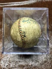 The only ball of its kind. This ball was used in the 1918 World Series Game 6 of Red Sox vs Chicago Cubs heavily inscribed by Babe Ruth with his nickname “ Sport” at the time before he was known to be Babe Ruth. This ball was the last out of the 1918 World Series Game 6 and was Babe Ruth’s personal ball for his own collection which he got signed by Sox Manager Ed Barrow, Team Owner Harry Frazee and Treasurer U. J. Herman. The name “Sport” was his early nickname before he started hitting home runs. Most historical ball ever used in Red Sox history as this was the last ball that they played with before they had the 86-year curse without winning any game after the team owner sold Babe Ruth to the Yankees.