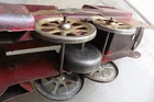 1920s DAYTON Pressed Steel Hill Climber Locomotive with Fly Wheel Motor and Die Cut Engineer in the cab windows...17" long..missing front bogey wheels,rear wheels, coal tender and front boiler light or bell?...works with a little help..has original paint and traces of gold pinstriping...rate overall in almost fair plus condition but a solid and good base for parts or restoration...from my personal collection of projects I will never get to...best offer gets it..heavy shipping item..