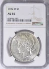 1922 - DENVER PEACE SILVER DOLLAR - NGC AU 55 VAM # ? = DIE CRACK IN LOWER NECK A NICE COIN FOR THE GRADE PLEASE LOOK AT ALL PHOTOS BEFORE PURCHASE PRICED TO SELL SKU: P 3641